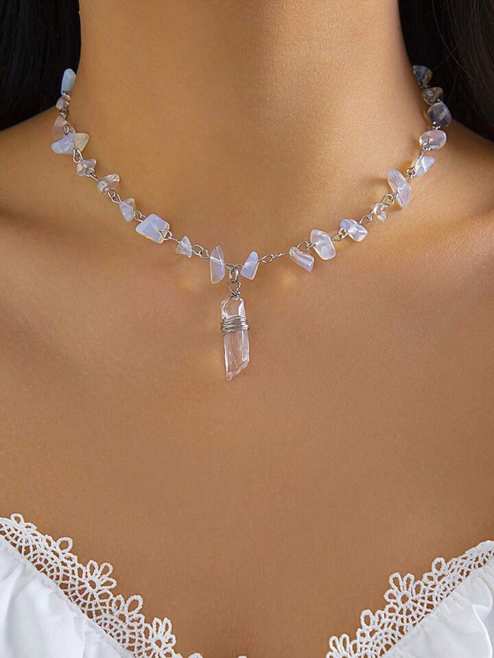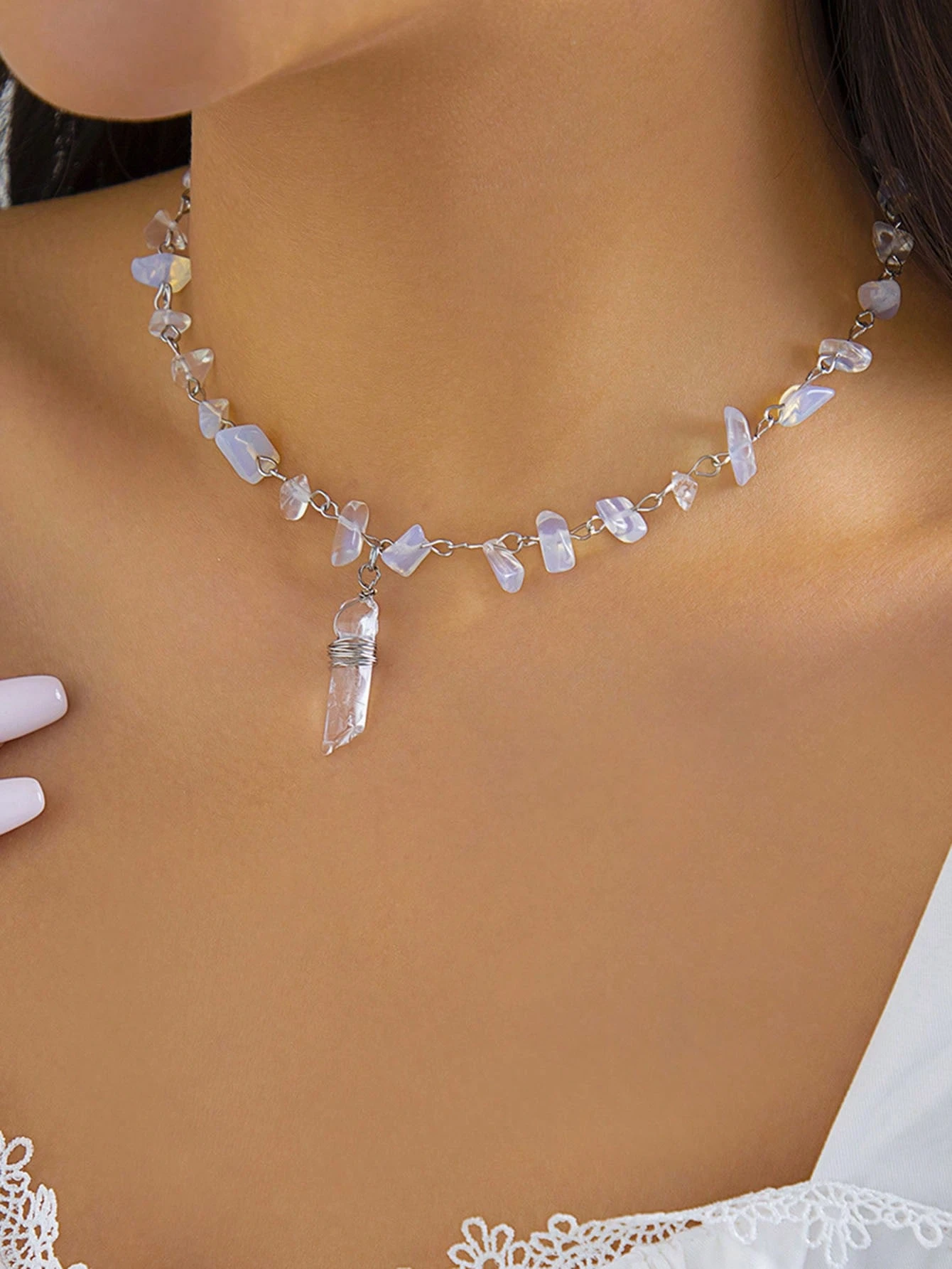 Fairycore 1 pezzo Collana con pendente in stile campagnolo minimalista asimmetrica in pietra impermeabile e cristallo per signora