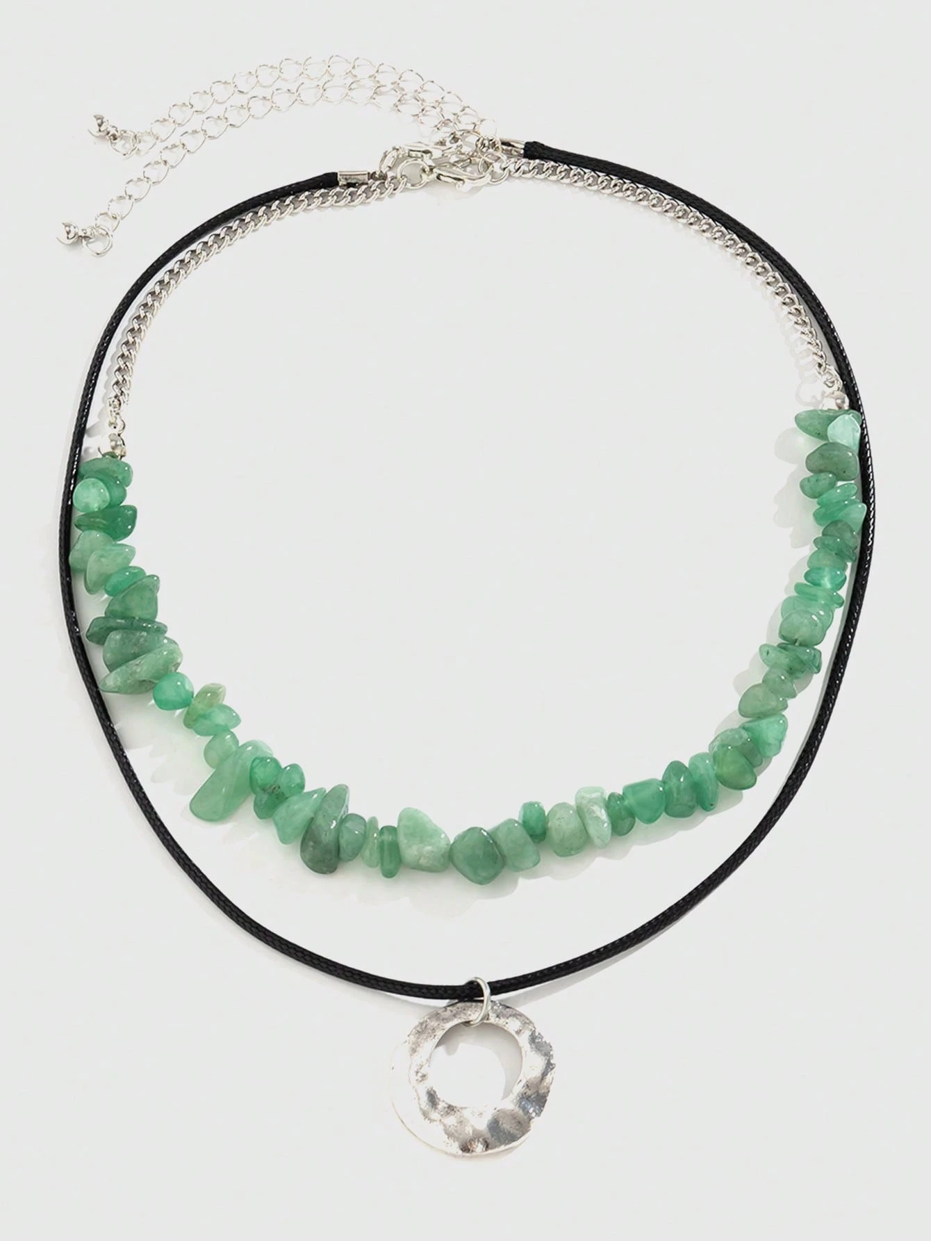 Fairycore Collier Multicouche À Cristaux Verts 1 Pièce (forme De Cristaux Aléatoire)