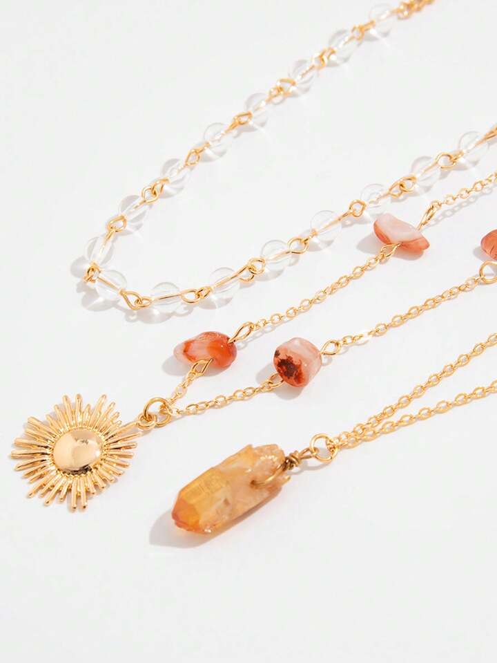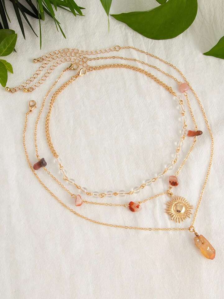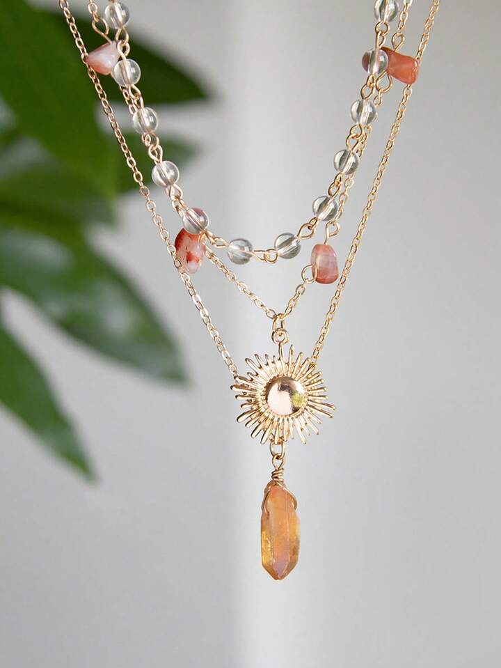 Fairycore 1 pezzo Collana da donna in stile bohémien con pendente asimmetrico a più strati con perline e pietre