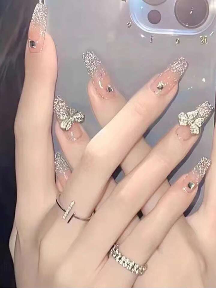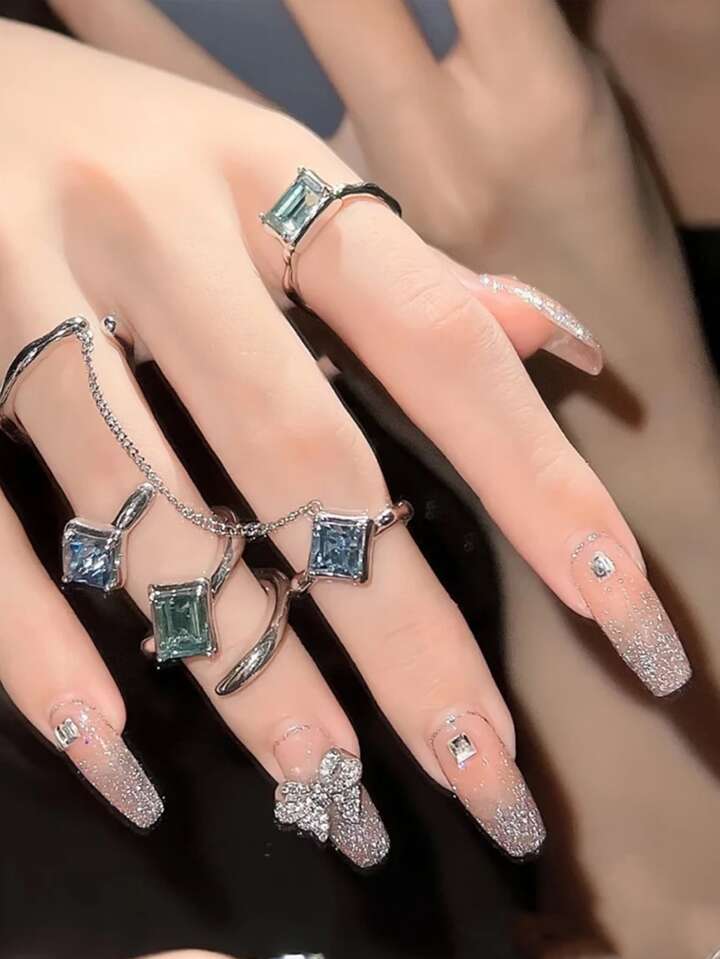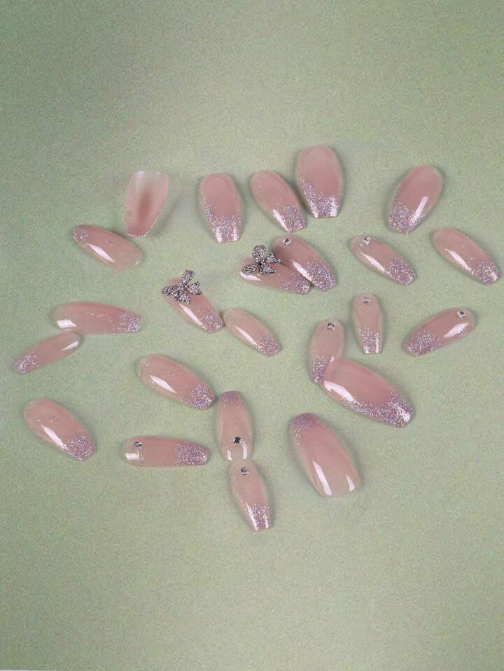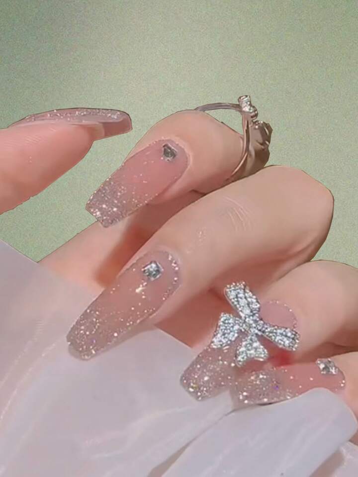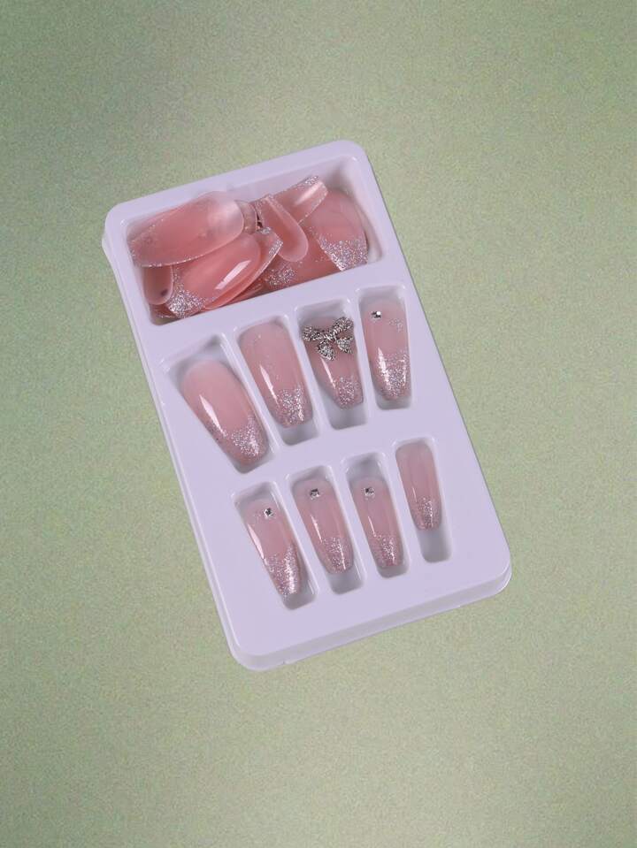 Fairycore 24 pezzi lungo bara con decorato fiocco Unghie finte & 1 foglio nastro