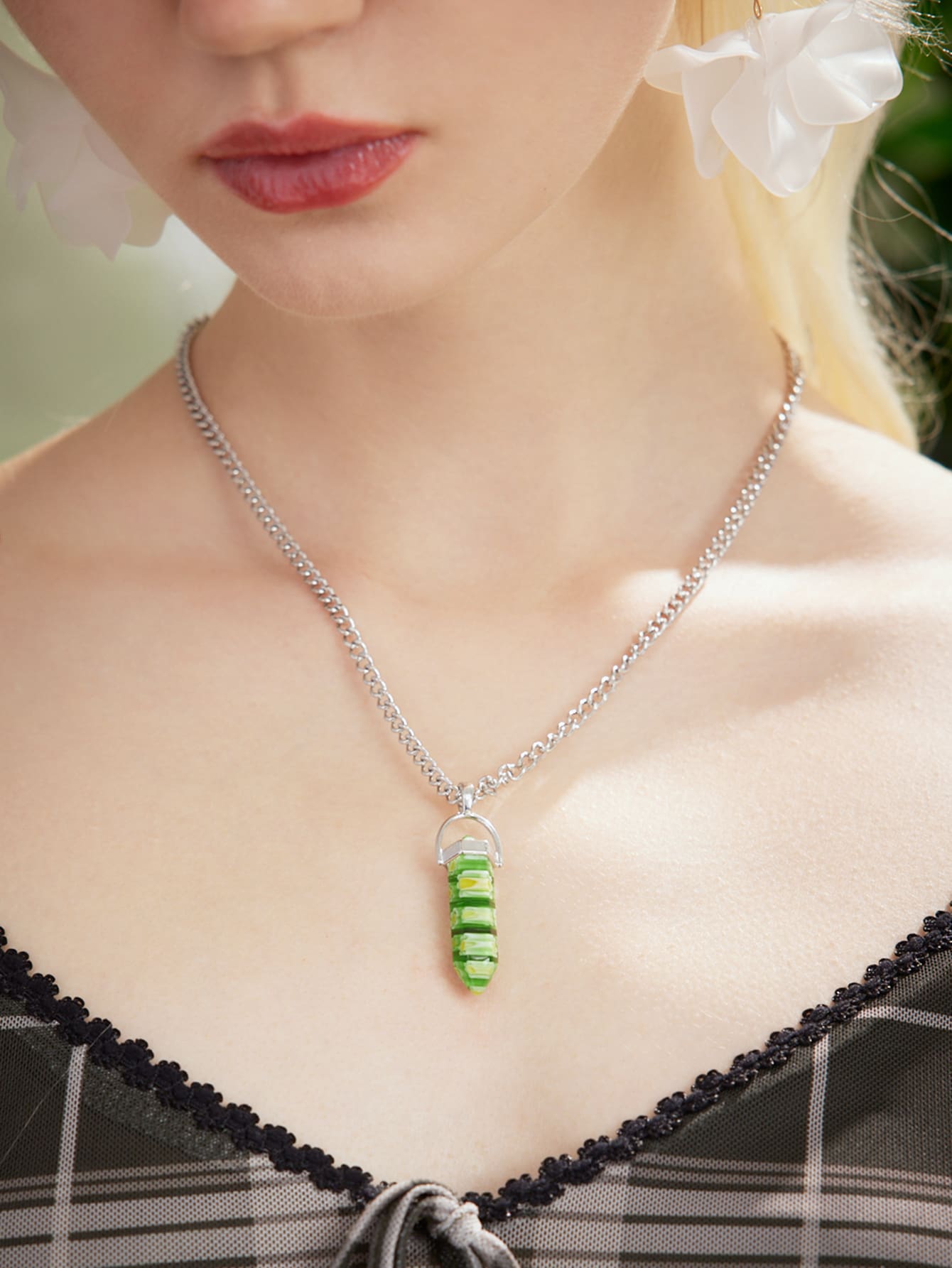 Fairycore 2 pezzi collana pendente decorato pietra