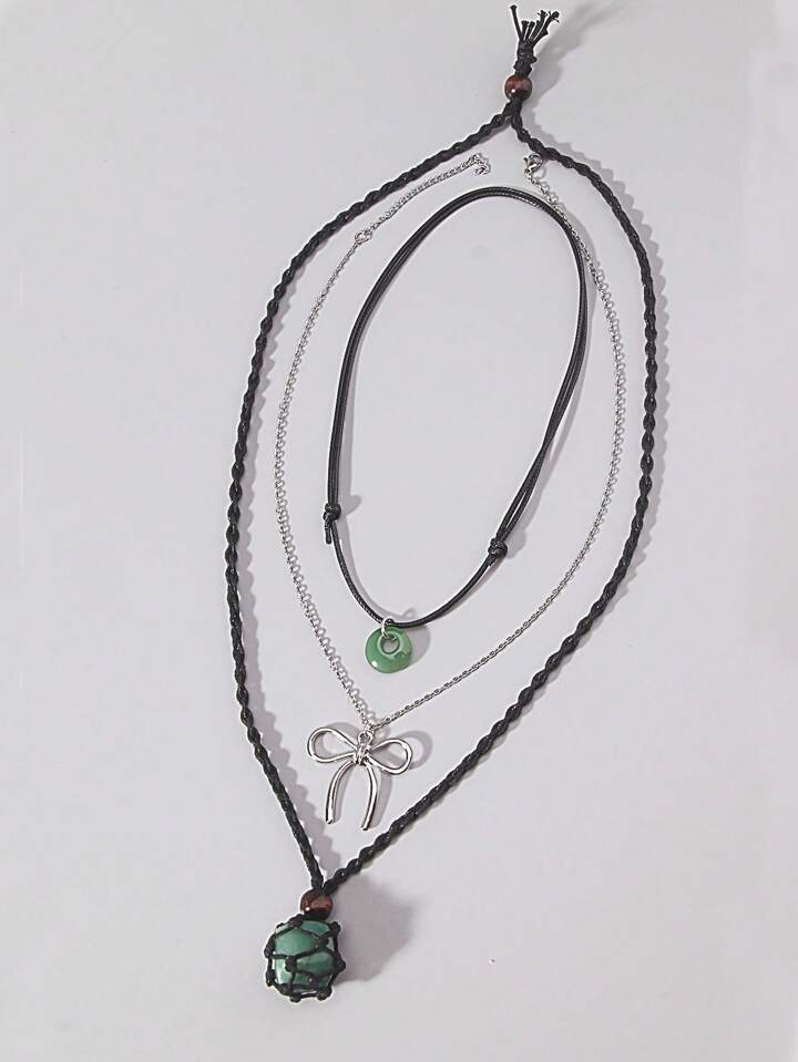 Fairycore Set di 3 collane da donna con ciondolo di libellula in acciaio inossidabile e pietre naturali tessute a mano, con stile vintage