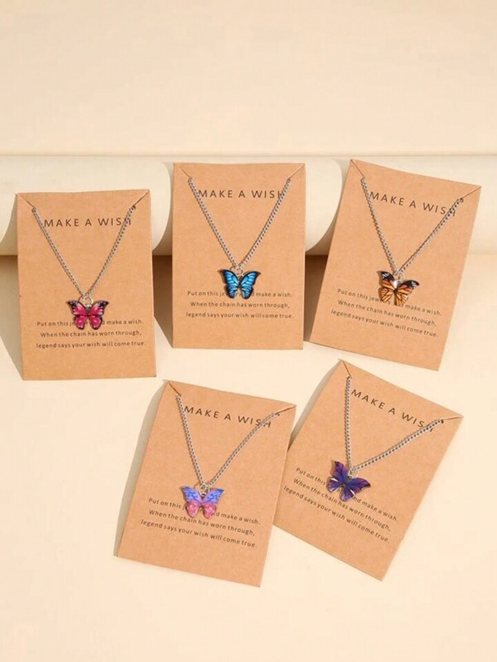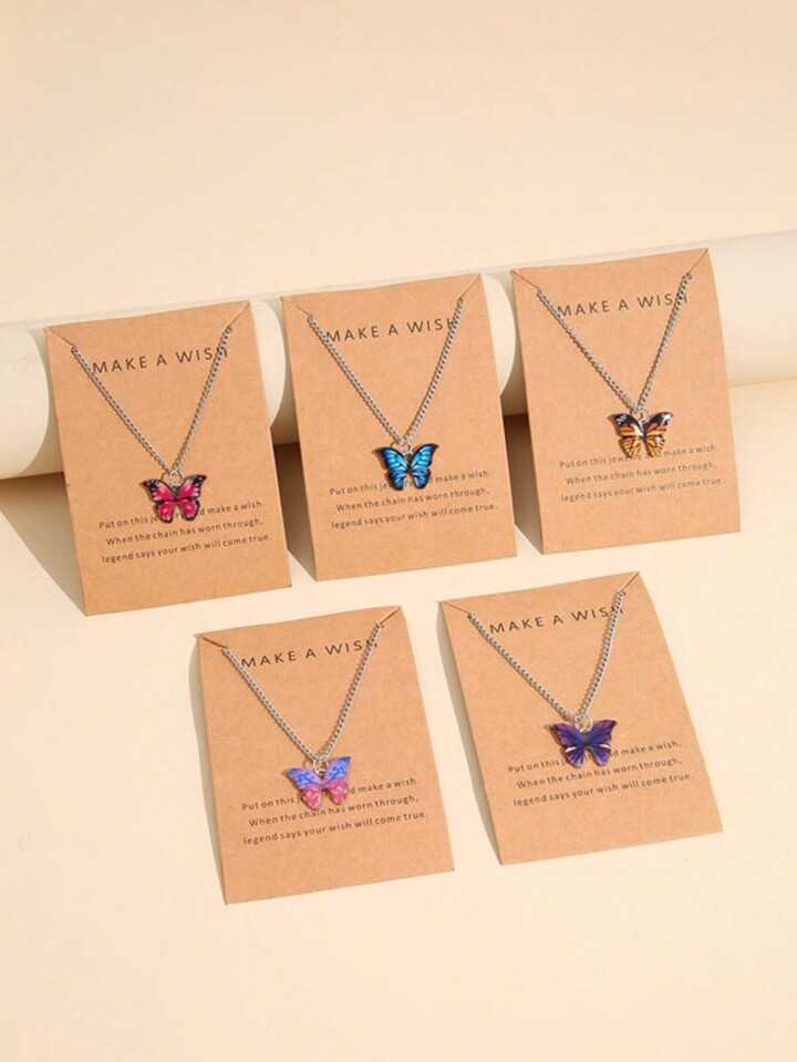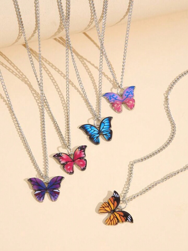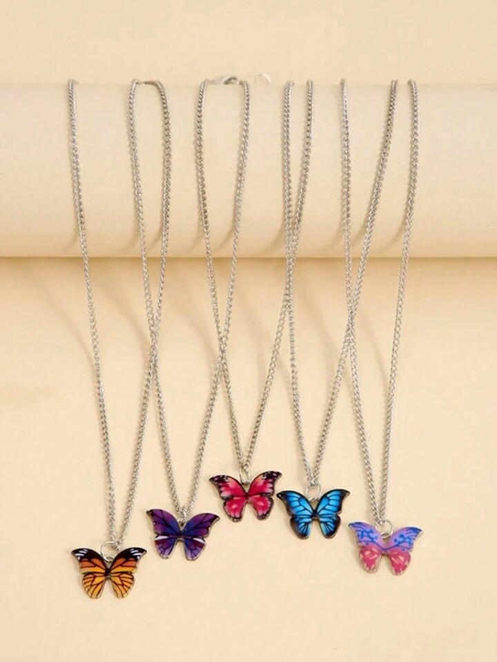 Fairycore 5 pezzi Collane alla moda ferro lega colore casuale ciondolo farfalla per donne per decorazione quotidiana