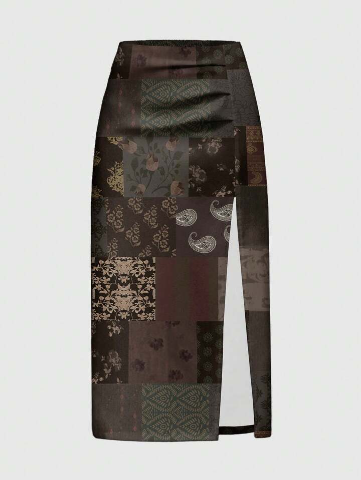Fairycore Gonna lunga con spacco alto e stampa floreale bohémien per donna