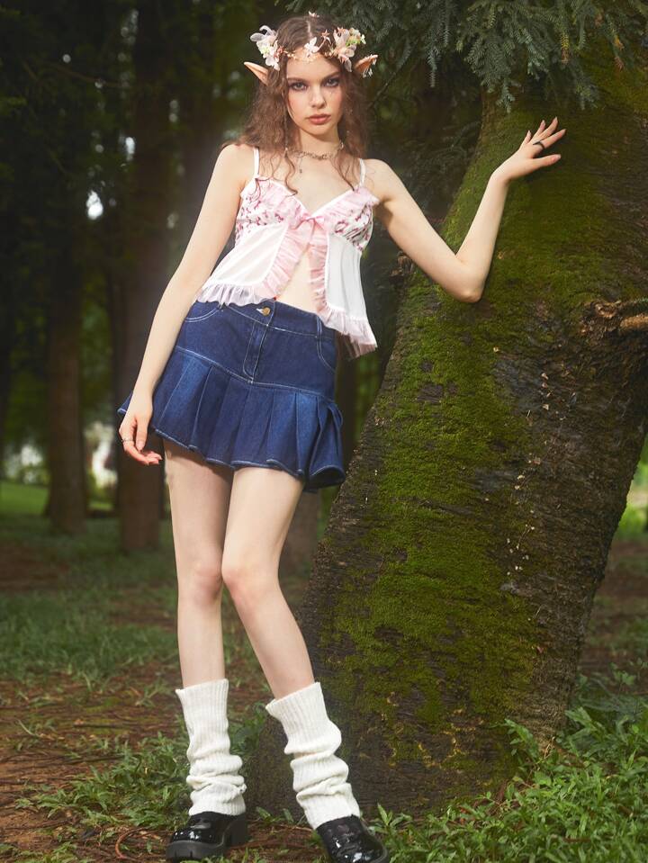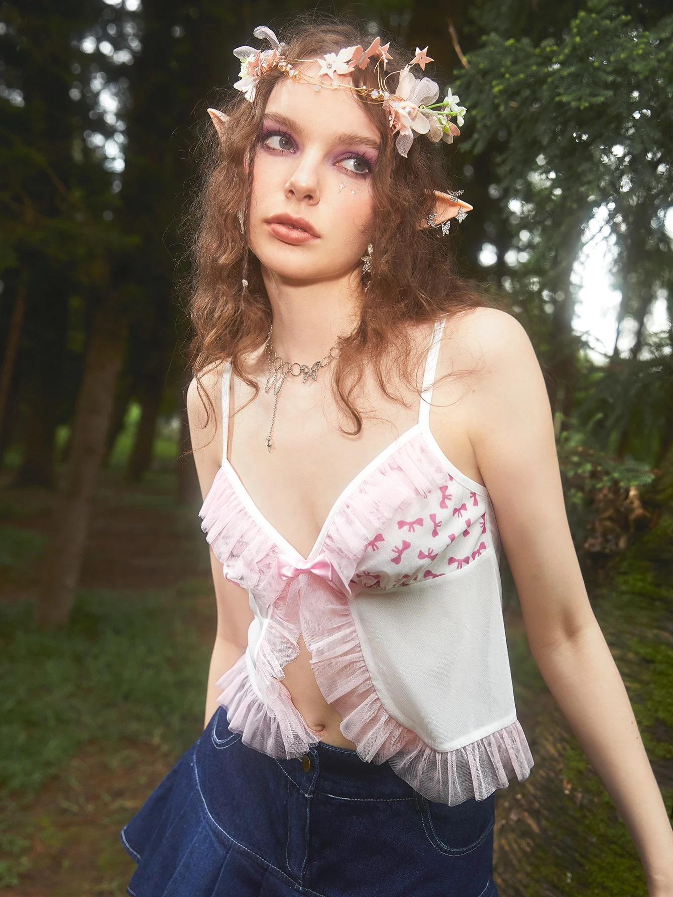 Fairycore con bretelle sottile fiocco grafico tulle a contrasto