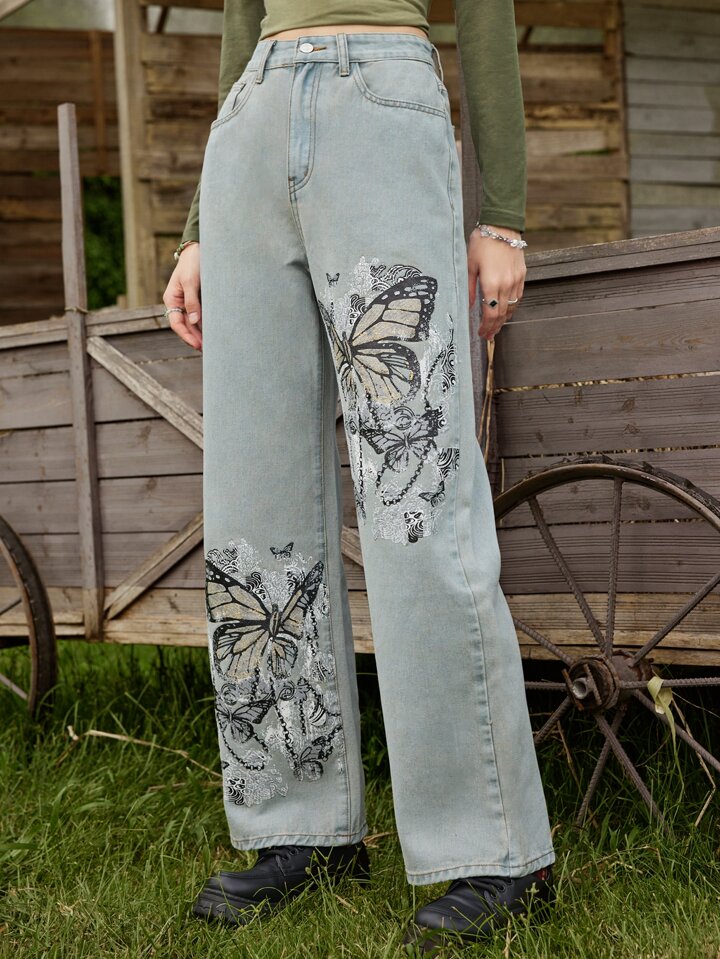 Fairycore Jeans a gamba dritta con grafica farfalla