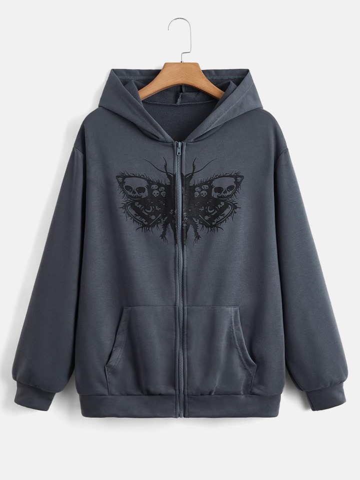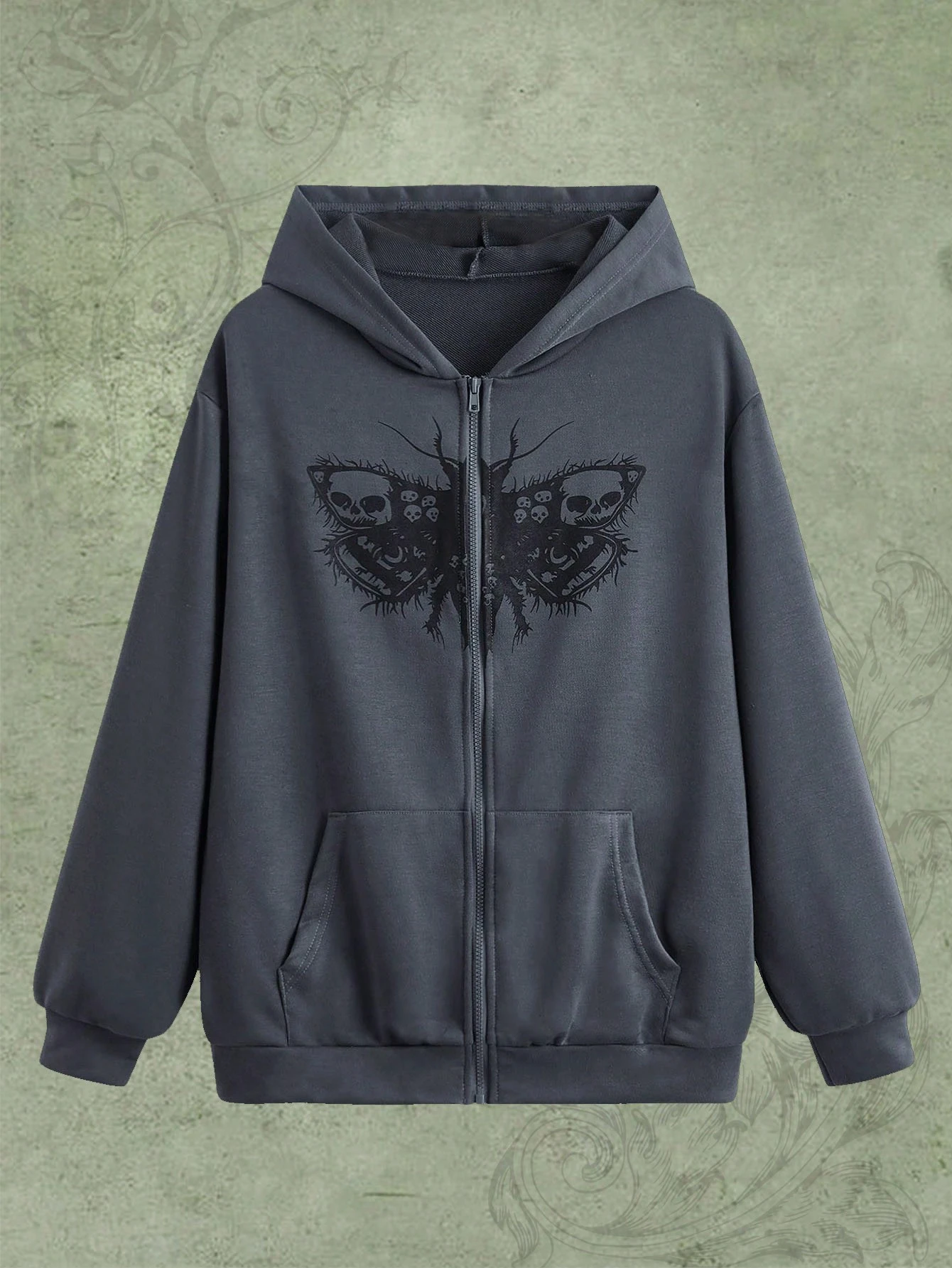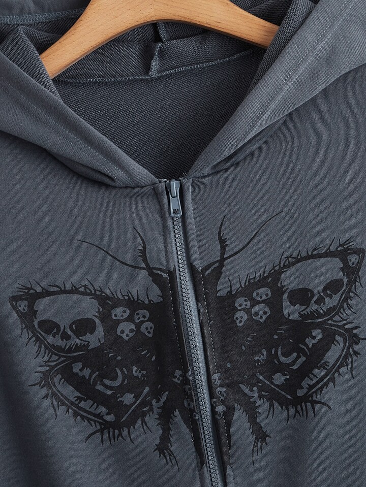 Fairycore Felpa con cappuccio e zip con stampa farfalla