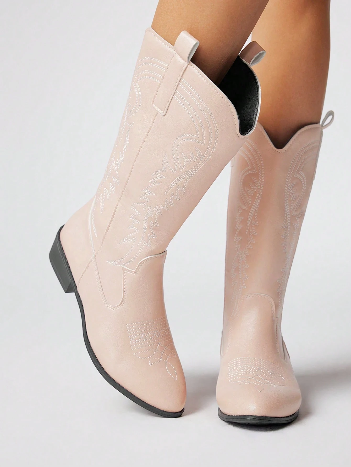 Fairycore Stivali al polpaccio in denim bicolore, stivali corti stile western, nuova collezione primavera/estate 2024