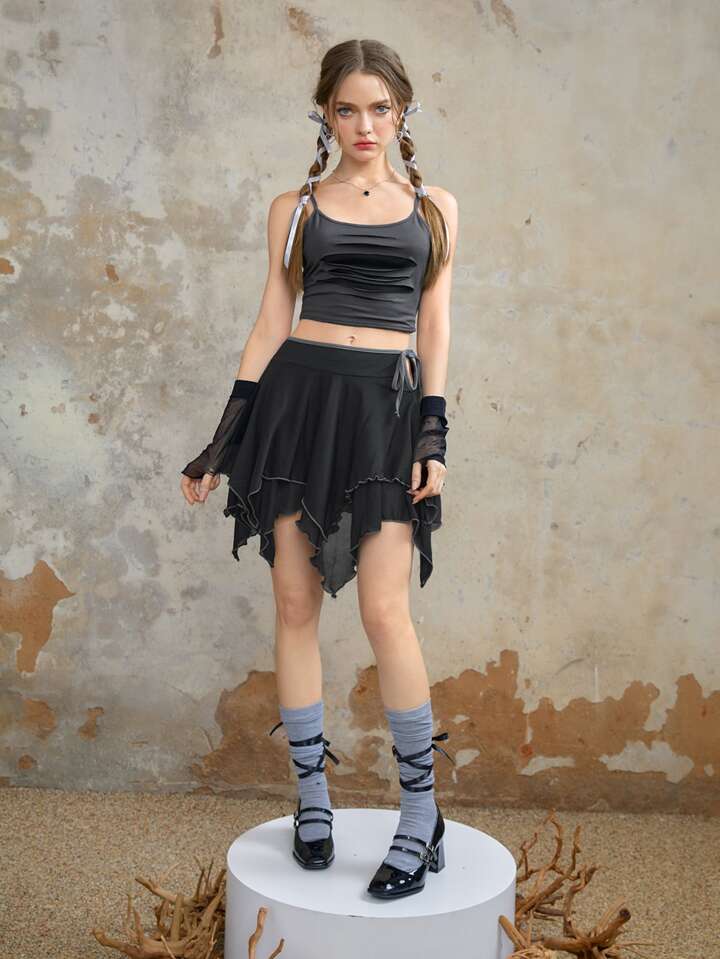 Fairycore Gonne da donna Asimmetrico Nodo Nodo frontale Colore unico Casual