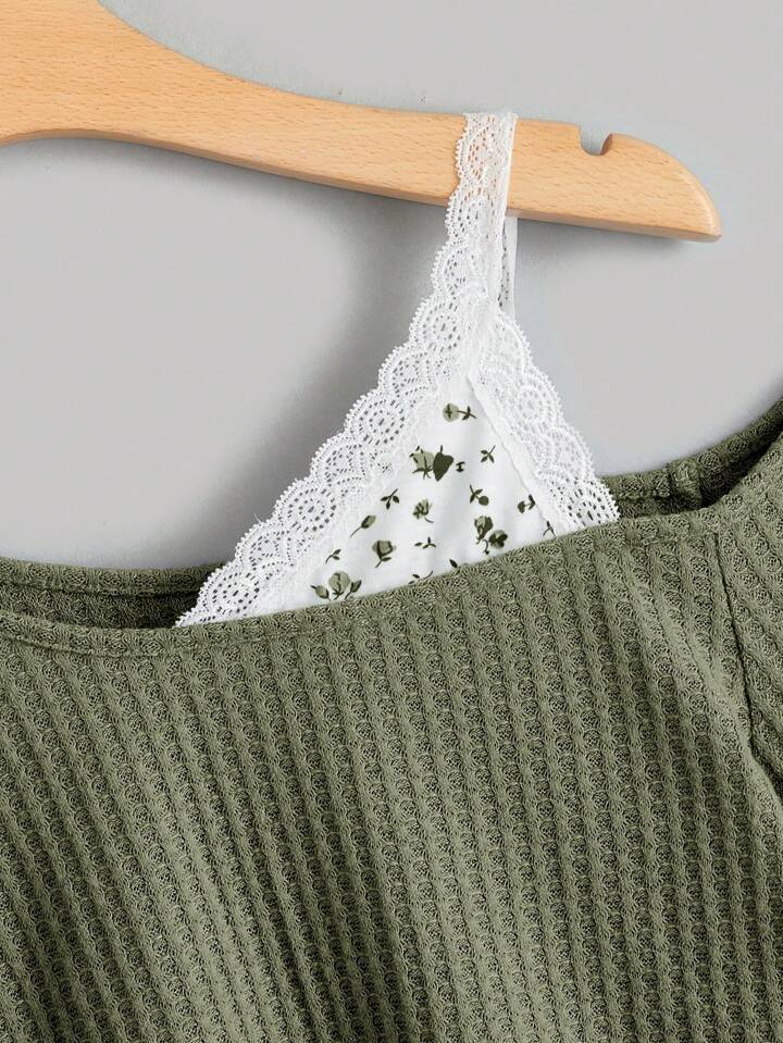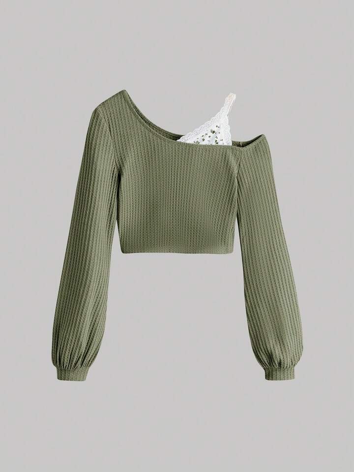 Fairycore Maglietta pizzo a contrasto scollatura asimmetrica