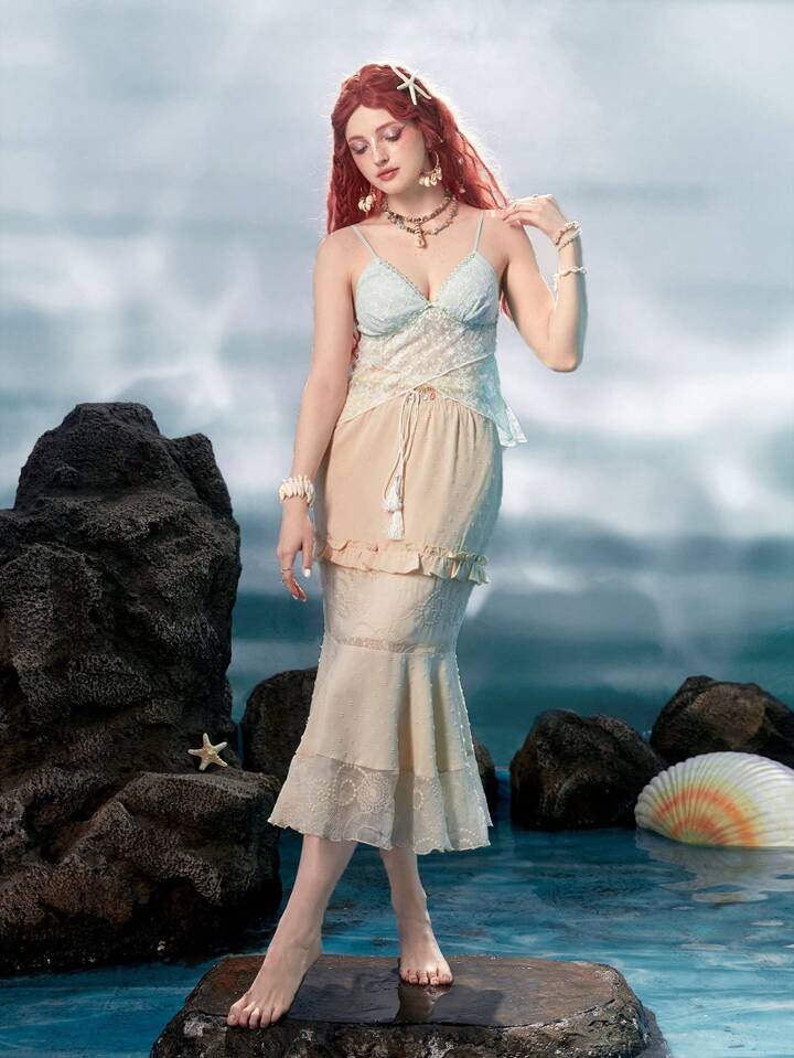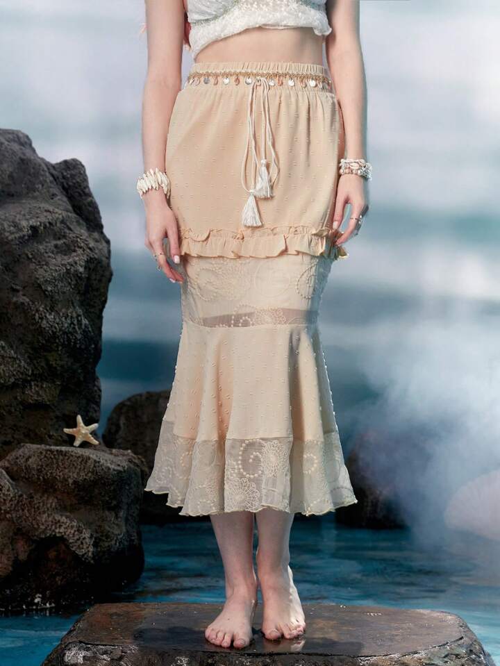 Fairycore Gonne da donna Pizzo a contrasto Contrasto Mesh Volanti Frange Colore unico Elegante