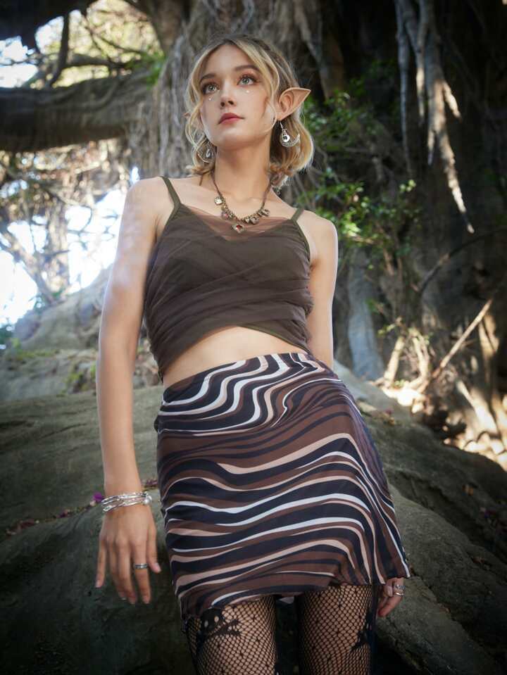 Fairycore Top con bretelle sottile tulle a contrasto