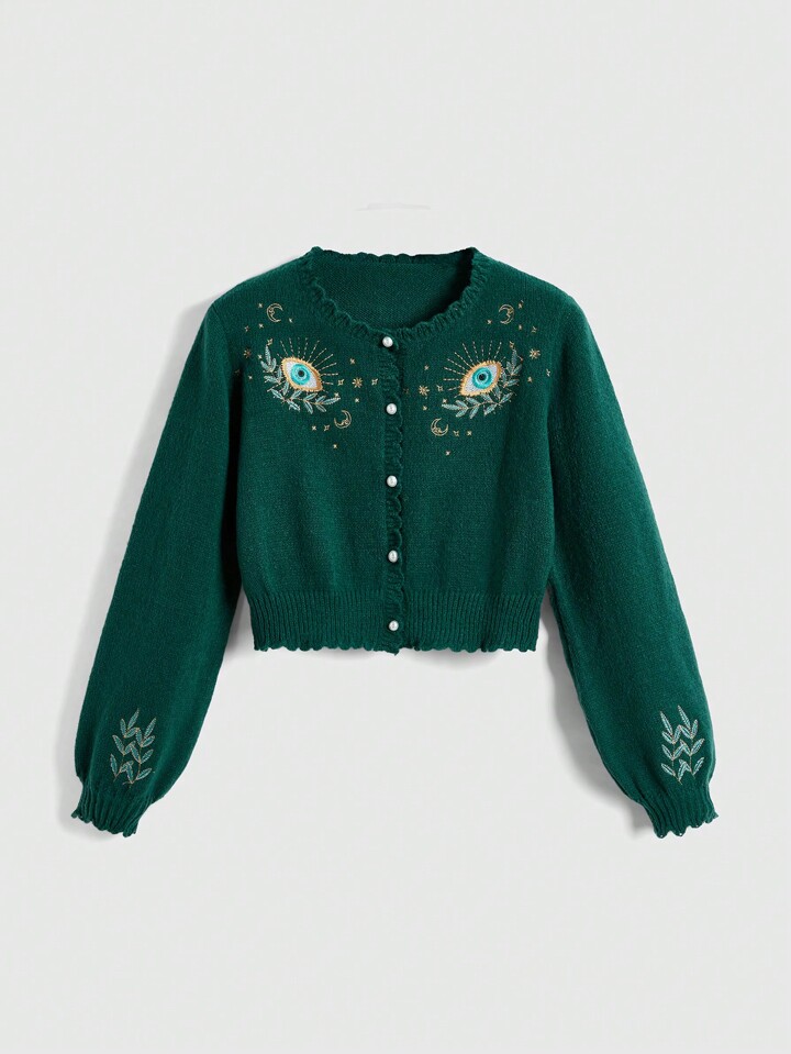 Fairycore Cardigan corto con ricamo ad occhio demoniaco
