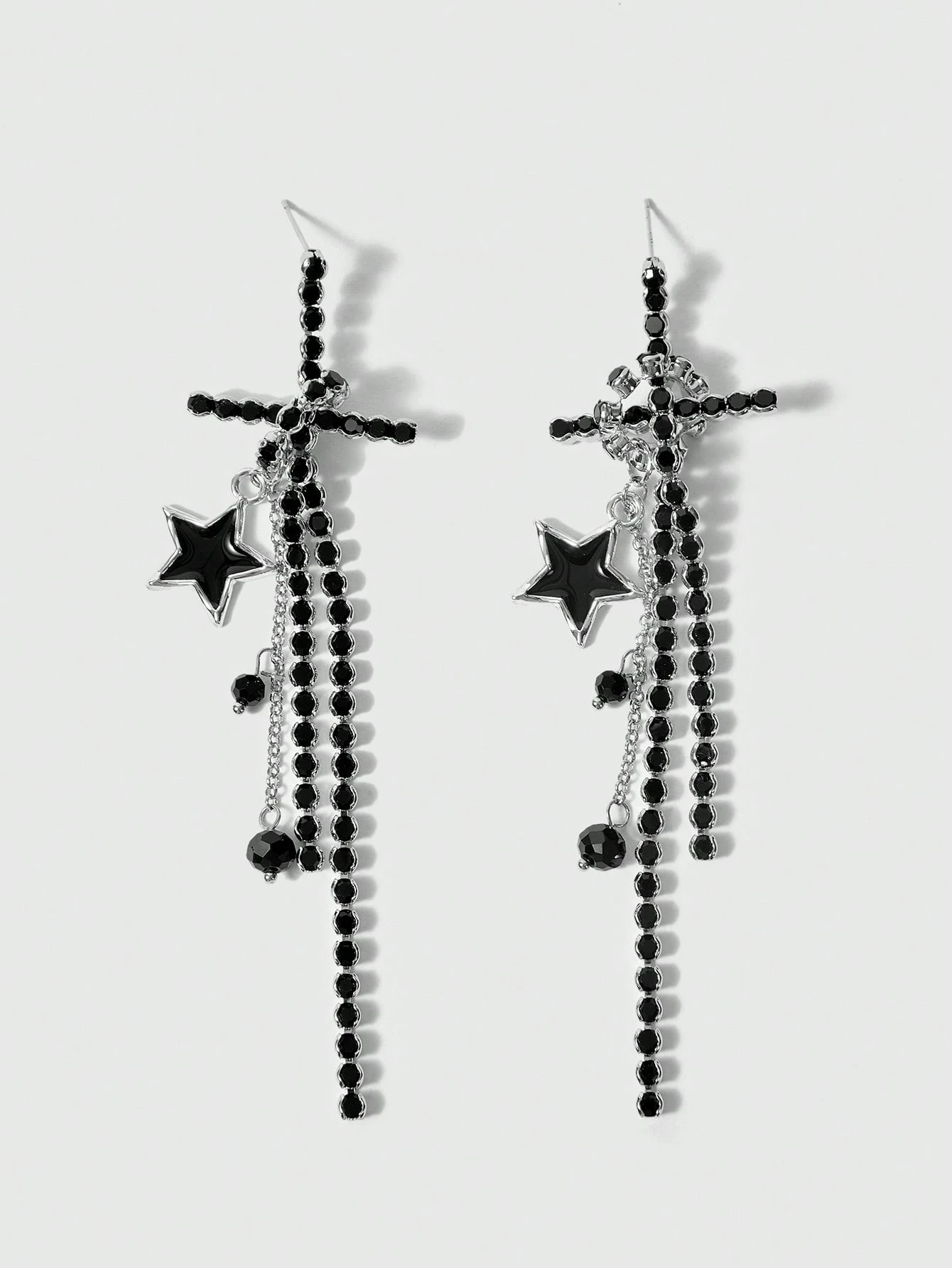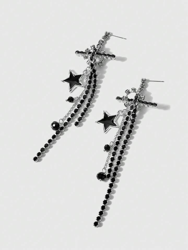 Fairycore Orecchini alla moda e creativi con croce e pentagramma completamente ricoperti di brillantini