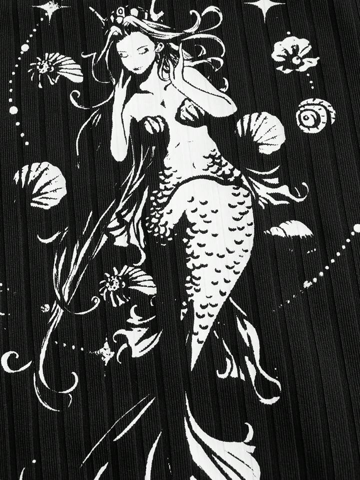 Fairycore Top bretelle sottile con stampa figura pizzo a contrasto