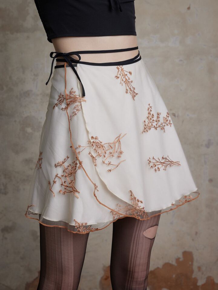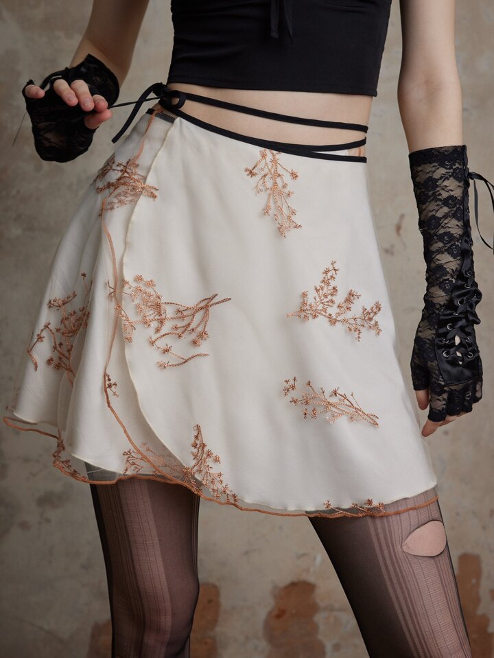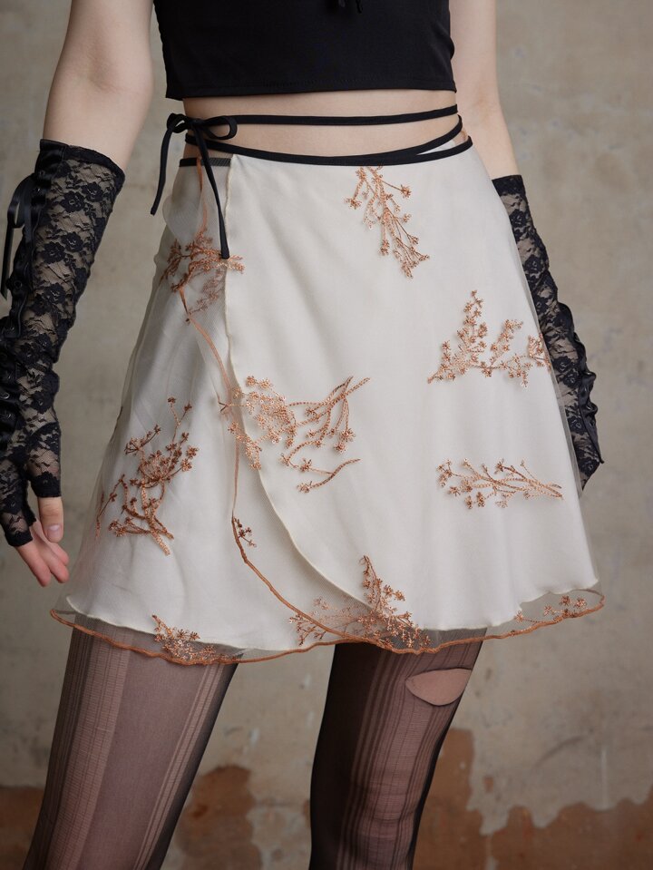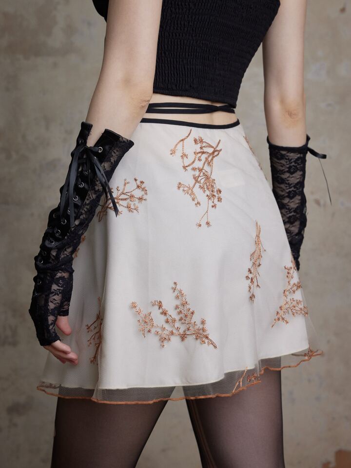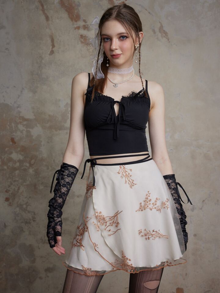Fairycore Gonne con stampa floreale bordo a contrasto fiocco in vita