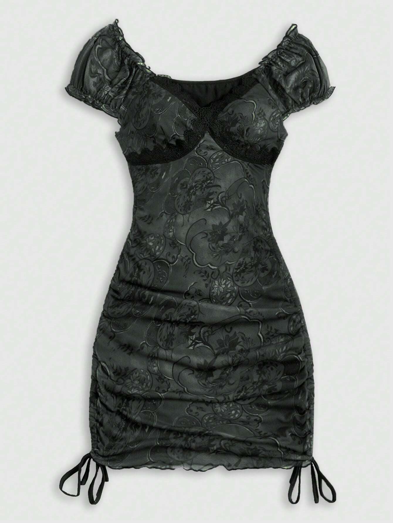 Fairycore Abiti con stampa floreale con coulisse plissettato