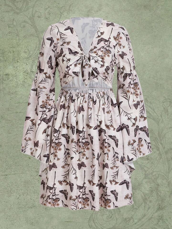 Fairycore Abito ritagliato sul davanti con cravatta e stampa floreale