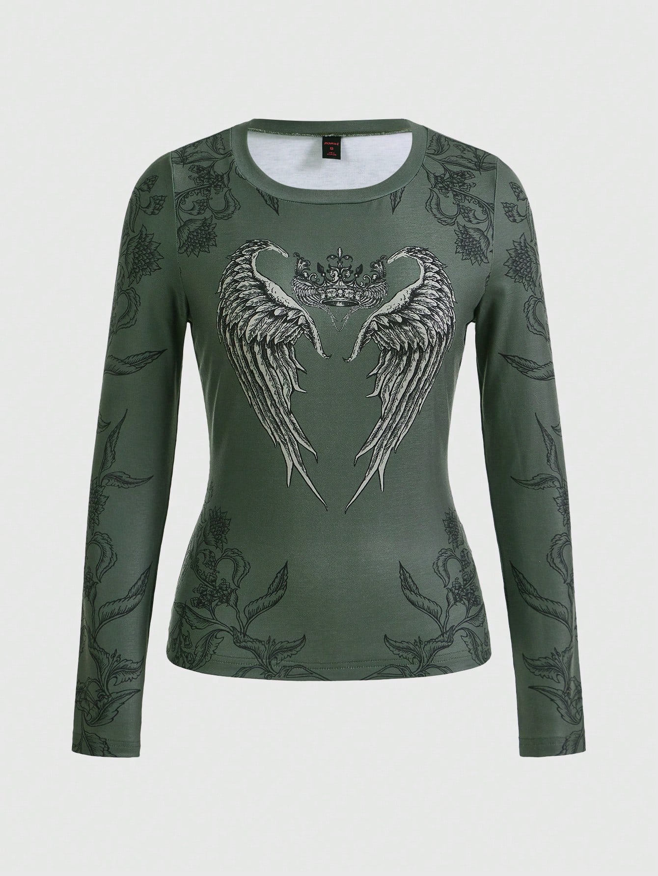 Fairycore Maglietta Con Stampa Floreale E Ali