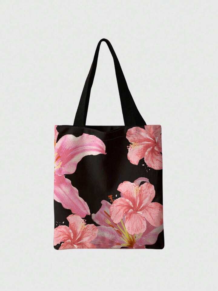 Fairycore Borsa a mano con stampa floreale, zaino di moda riutilizzabile, borsa multifunzione, borsa di tela stampata per fare la spesa, borsa a tracolla con stampa
