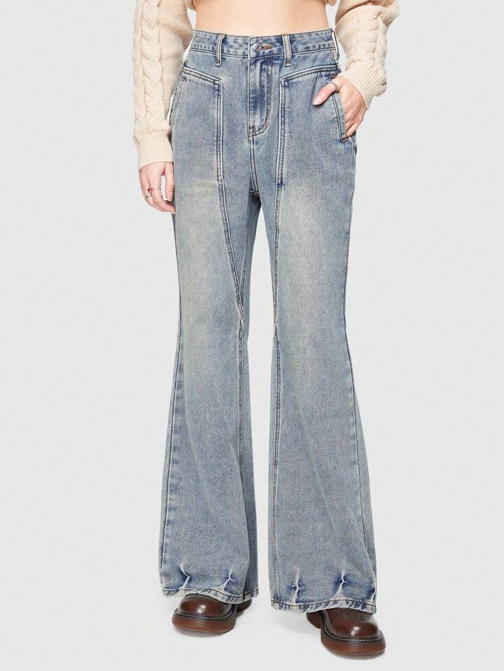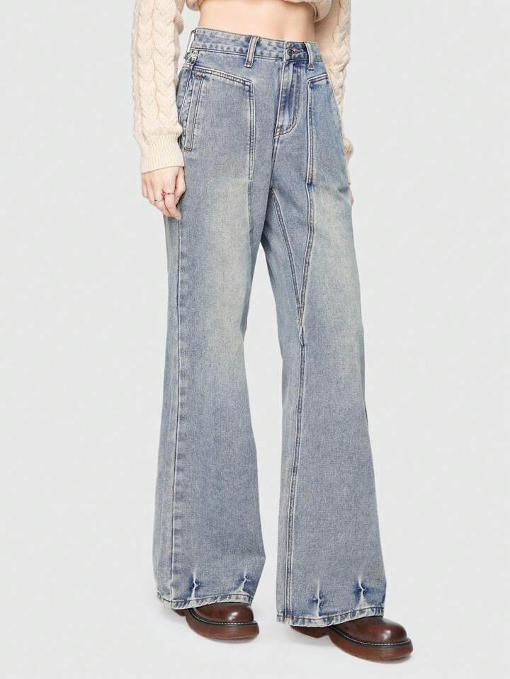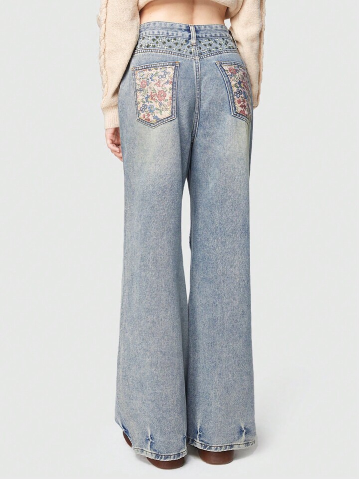 Fairycore Jeans A Gamba Dritta Con Stampa Floreale