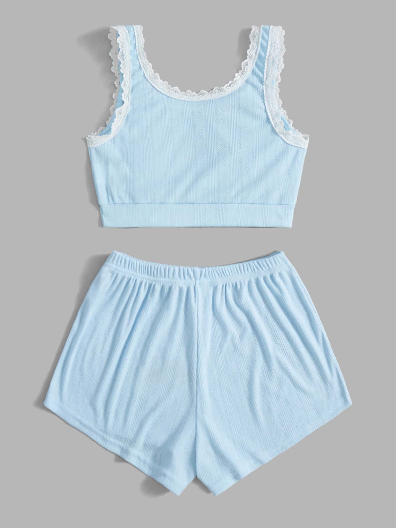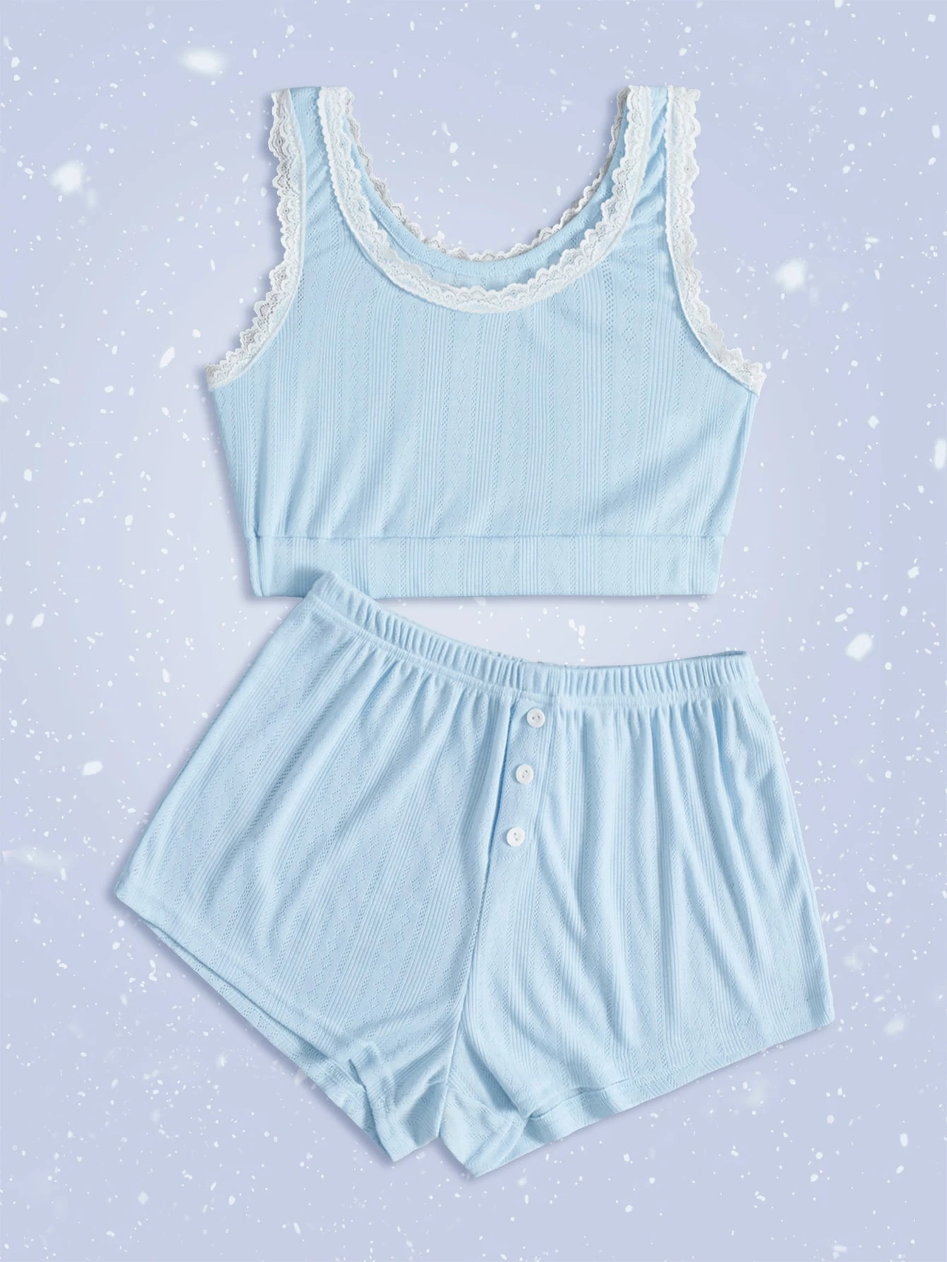 Fairycore Set pigiama da donna Bottone frontale Pizzo a contrasto Colore unico Casual