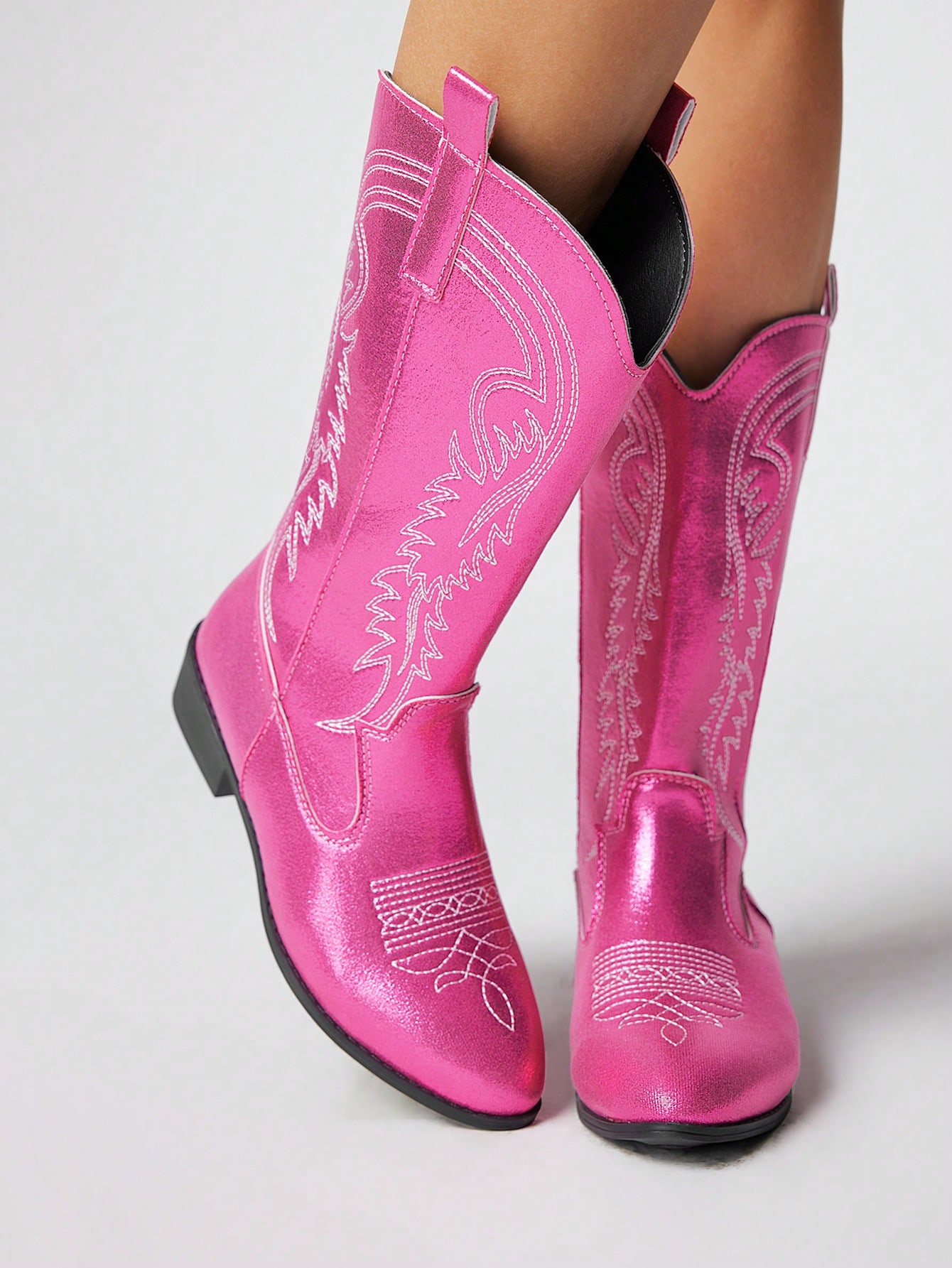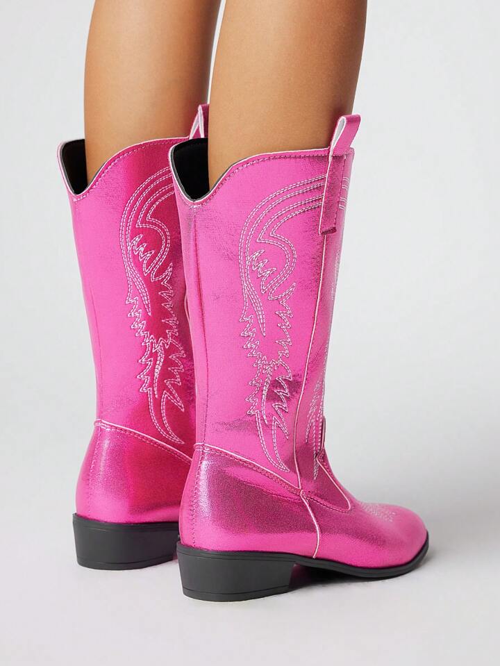 Fairycore Stivali di jeans a mezza gamba di colore misto, stivali corti stile western, nuovi per la primavera/estate 2024, rosa