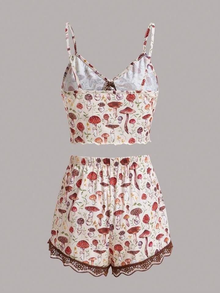 Fairycore Set pigiama con stampa funghi pizzo a contrasto