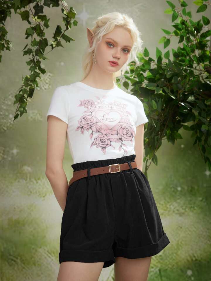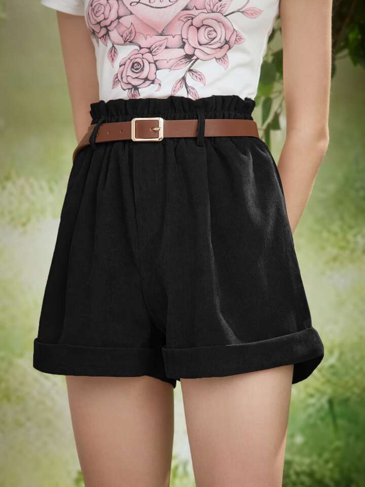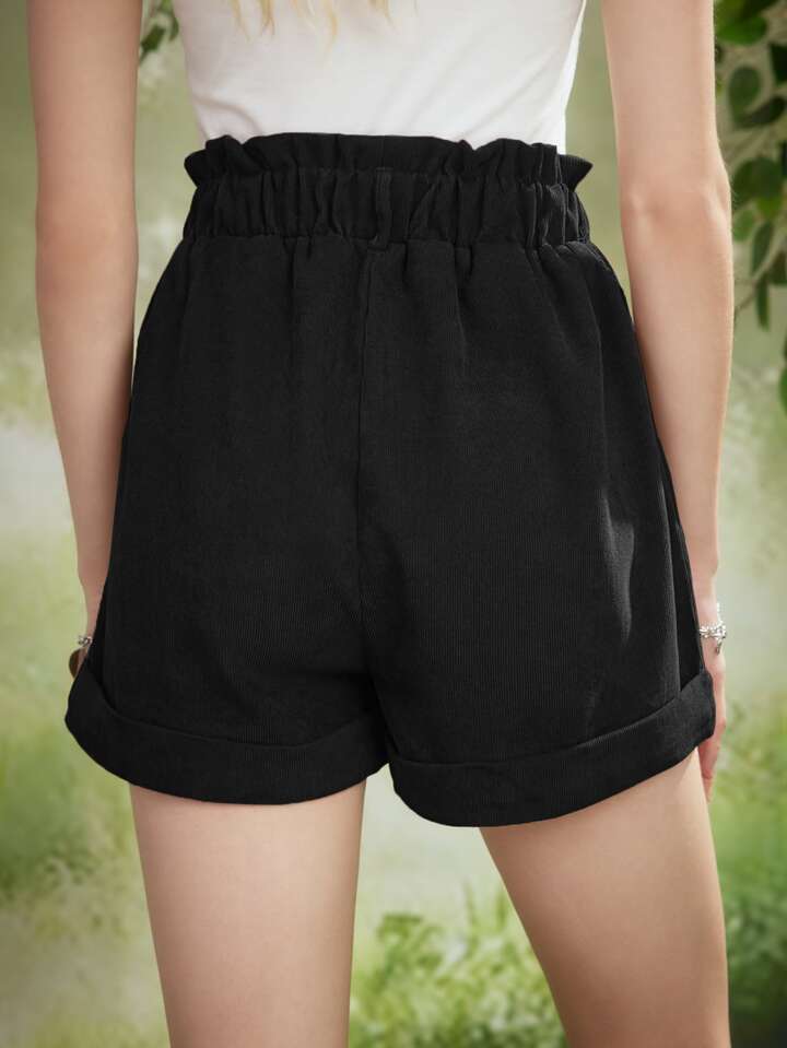 Fairycore Shorts vita a volant sovrapposti di velluto a coste