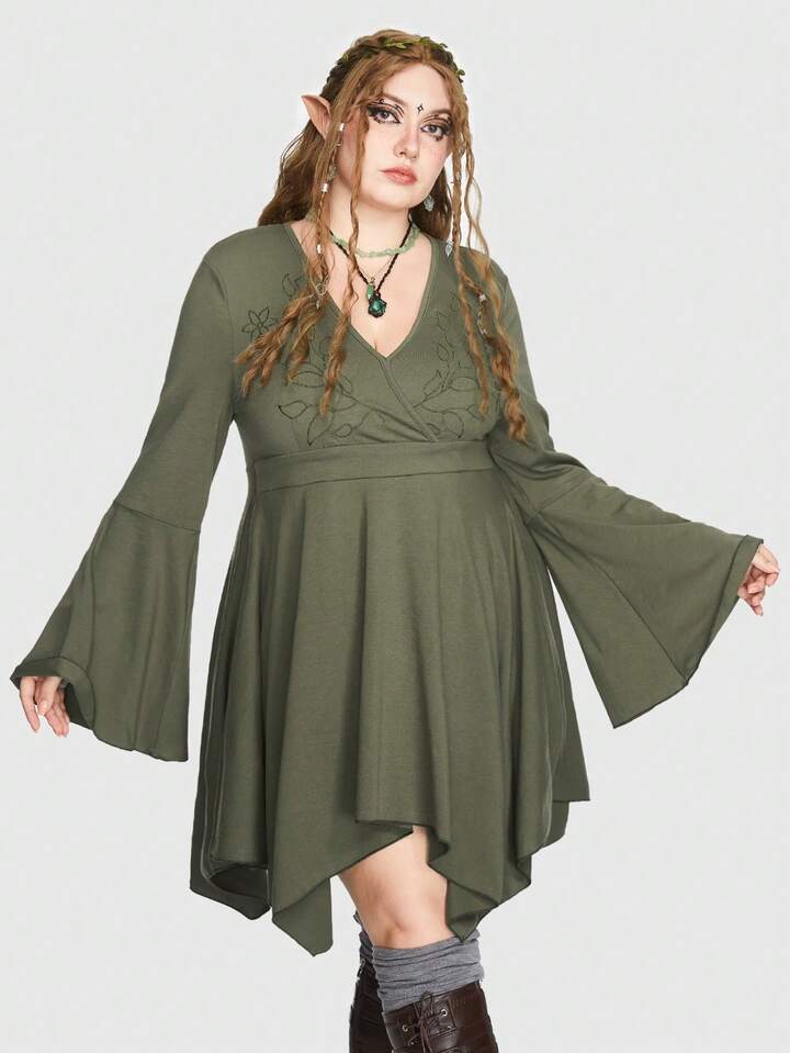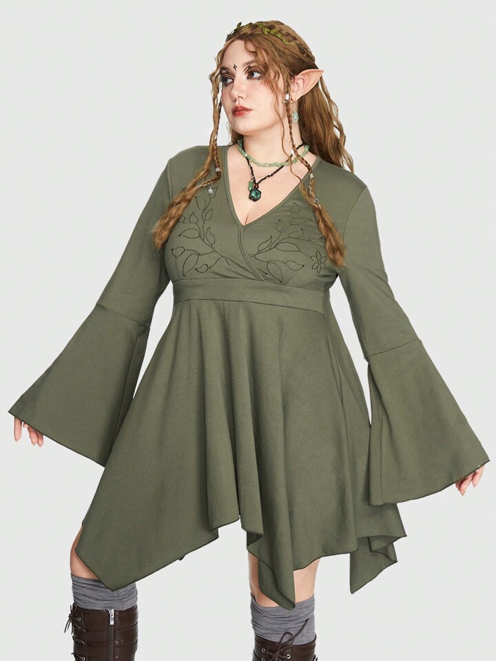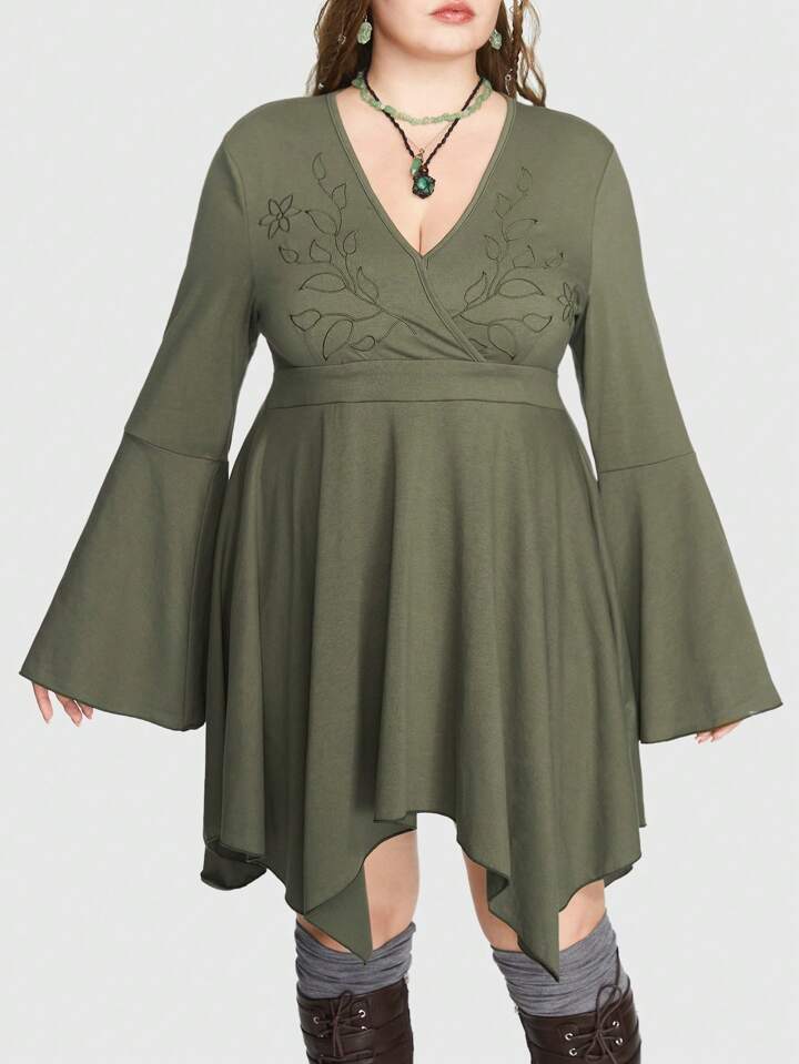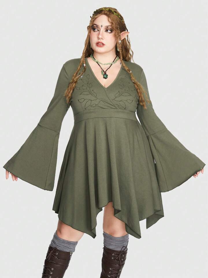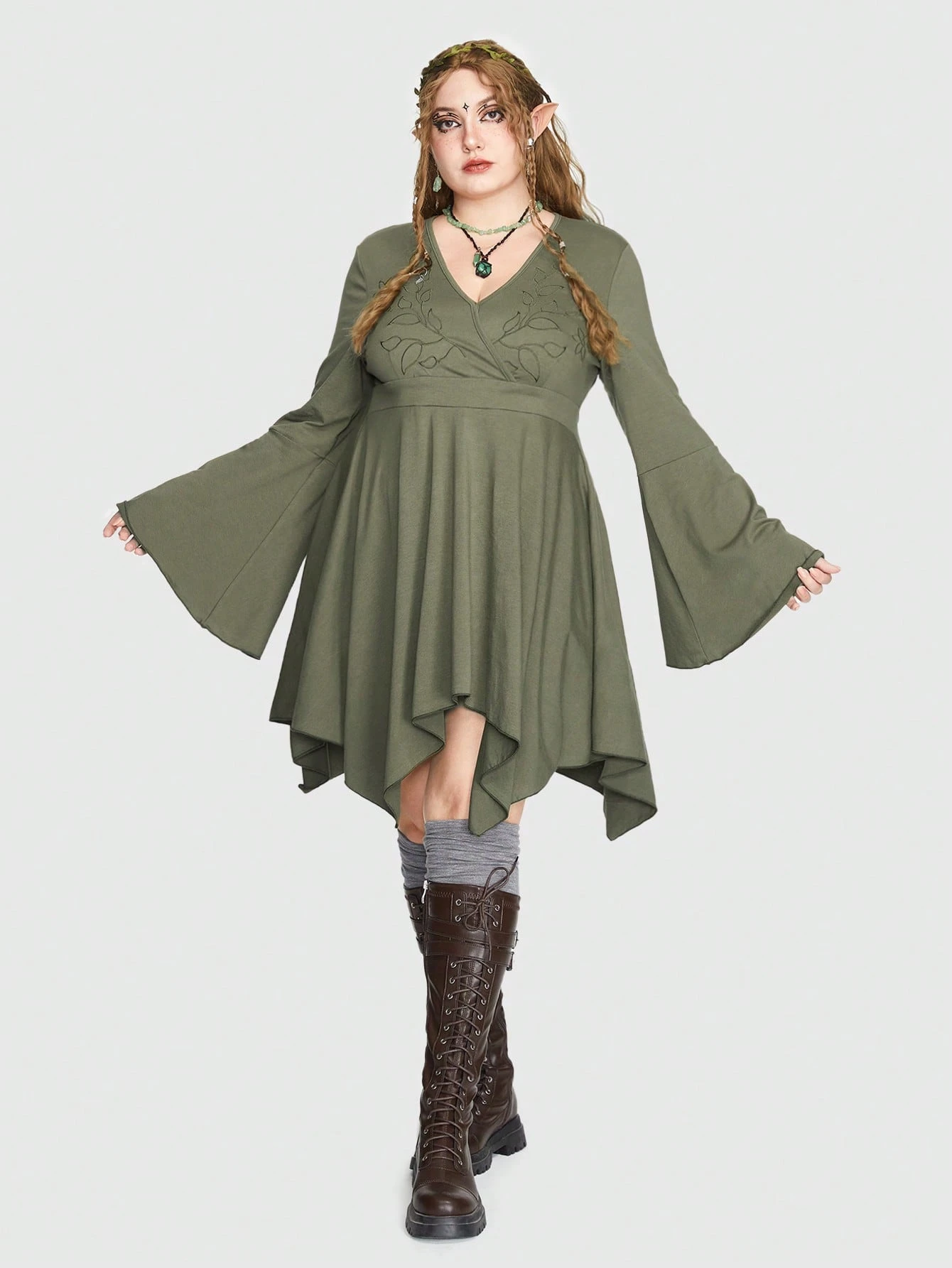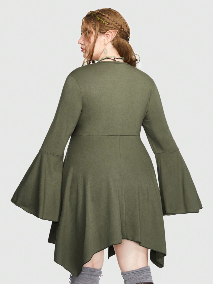 Fairycore Taglie Forti Abiti pizzo a contrasto maniche svasata con orlo asimmetrico