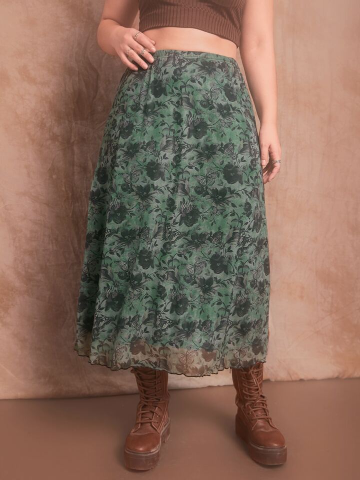 Fairycore taglie forti Gonne con stampa floreale mesh
