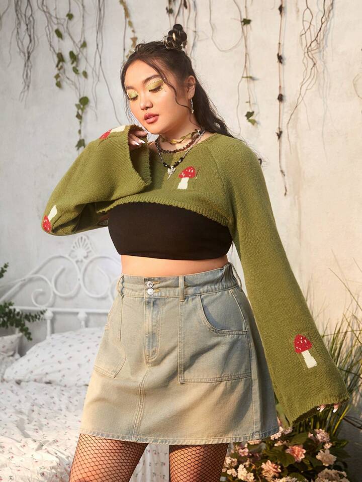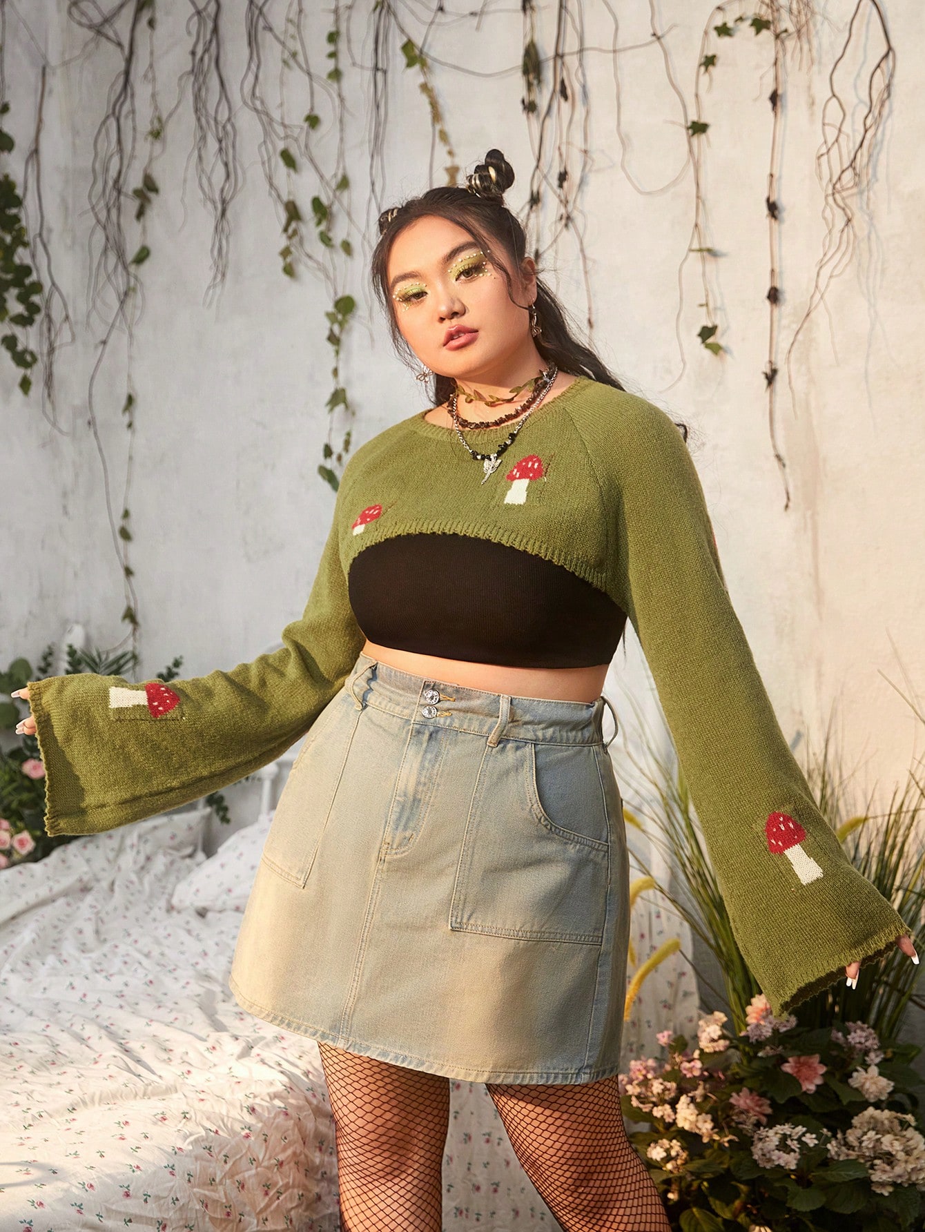 Fairycore Taglie Forti Maglione motivo fungo super corto senza top a fascia