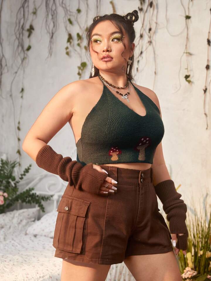 Fairycore Taglie Forti Top in maglia motivo fungo capestro halter