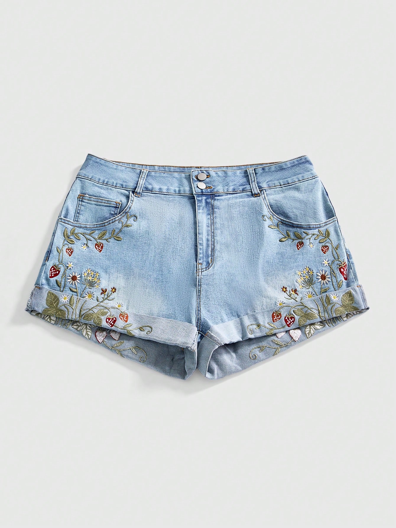 Fairycore Pantaloncini di jeans casual estivi da donna taglie forti con ricamo botanico