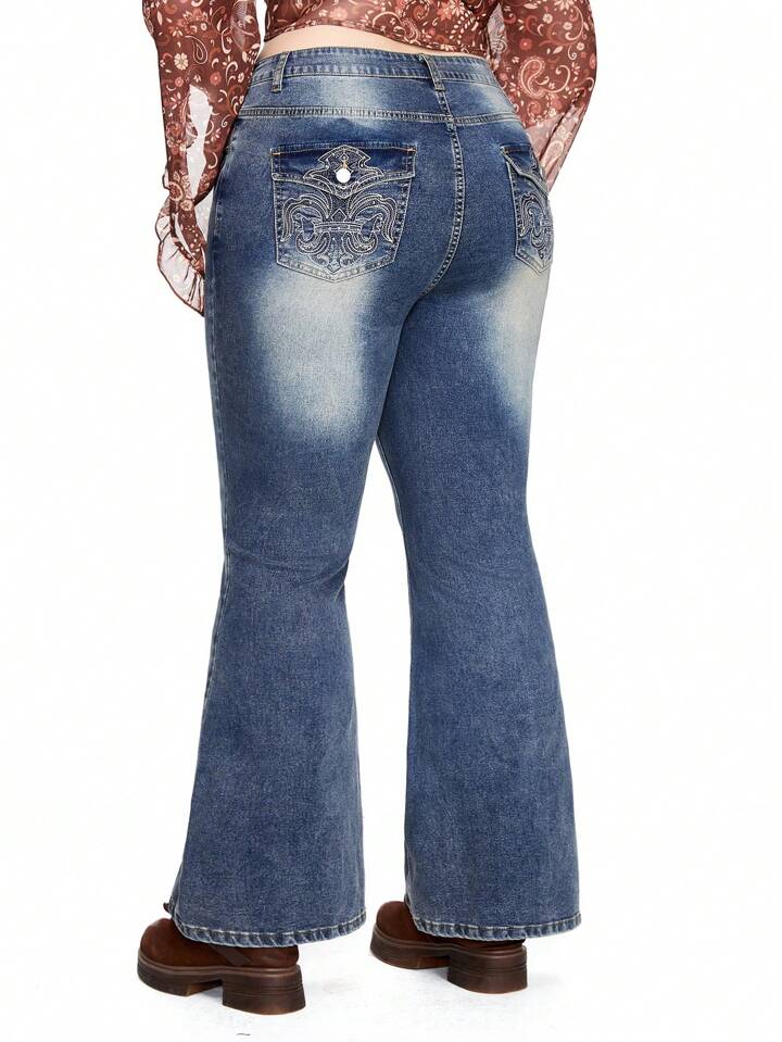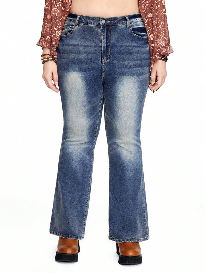 Fairycore Jeans casual con gamba ampia e cerniera, con tasche, per donne taglie comode, adatto per la scuola