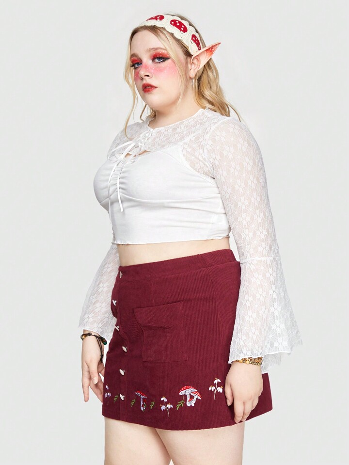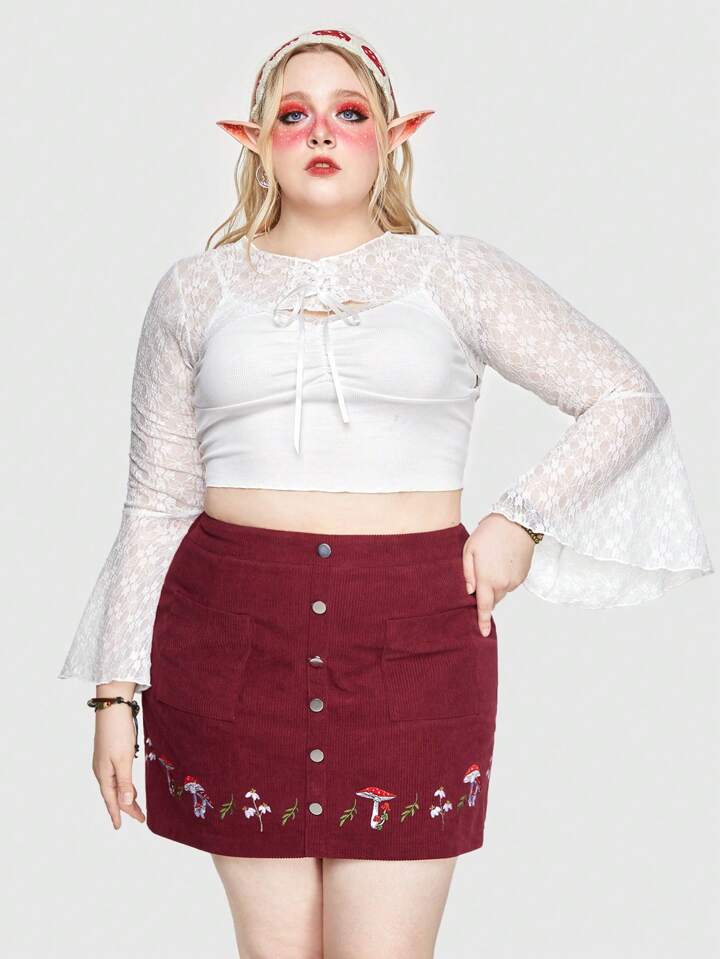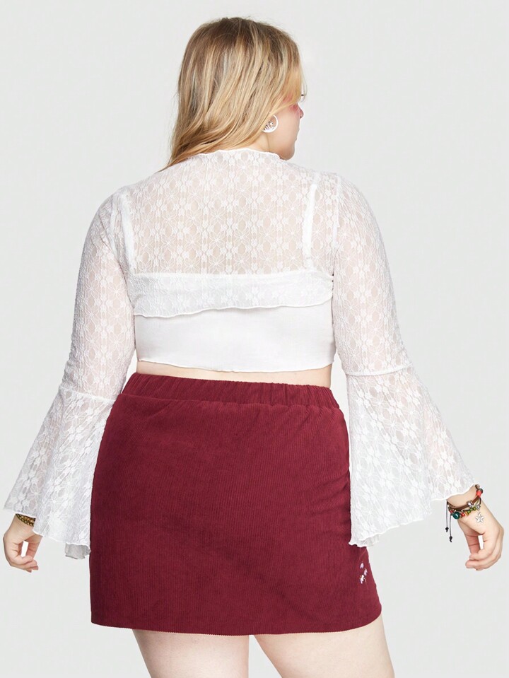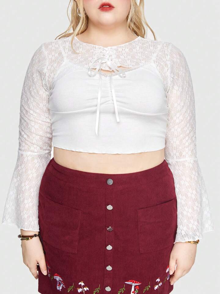 Fairycore Top Corto A Campana Con Cinghie A Fiocco Con Maniche A Campana Per Donne Di Taglia Grande, Di Colore Tinta Unita