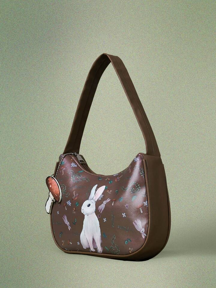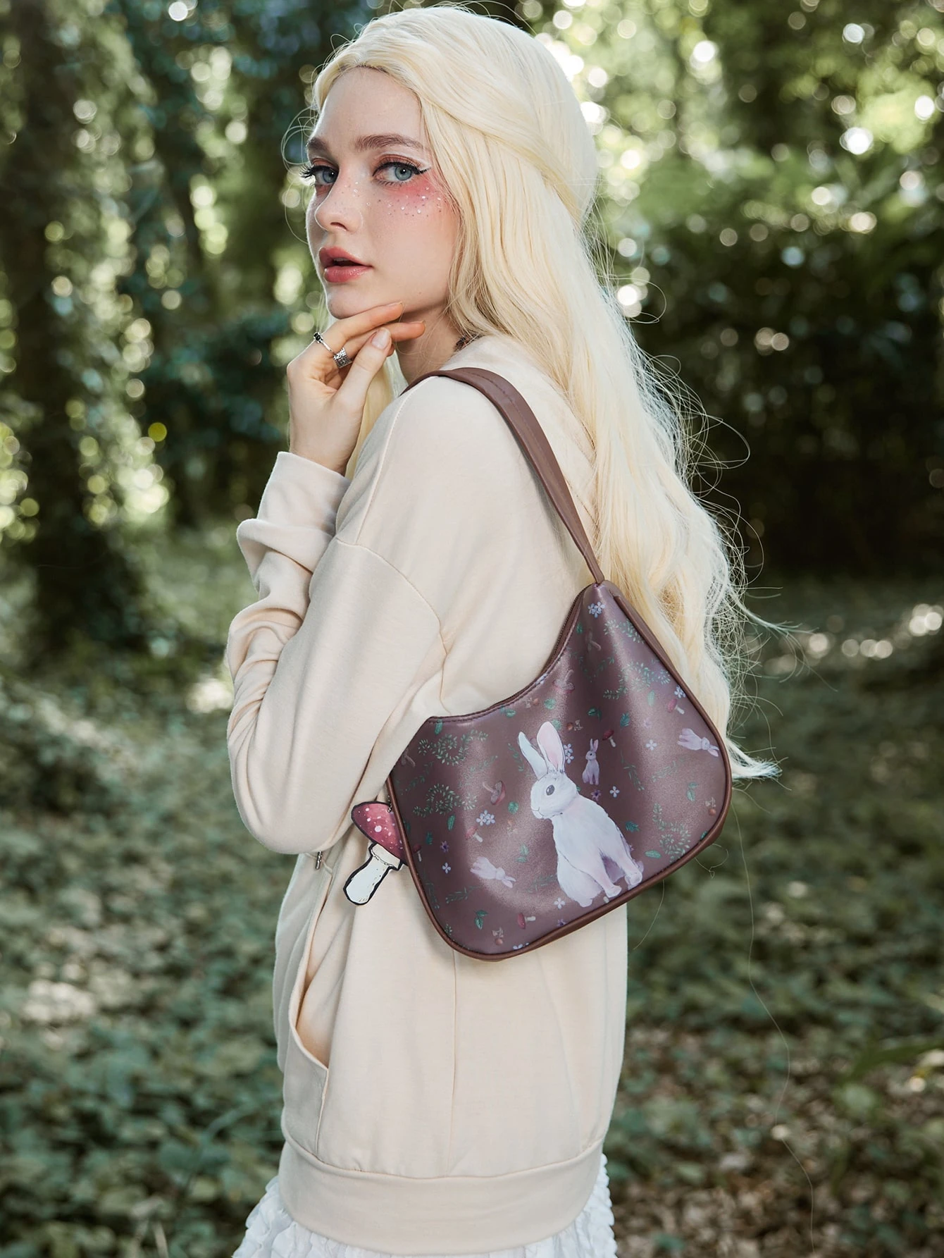 Fairycore Borsa hobo con stampa coniglio con ciondolo funghi