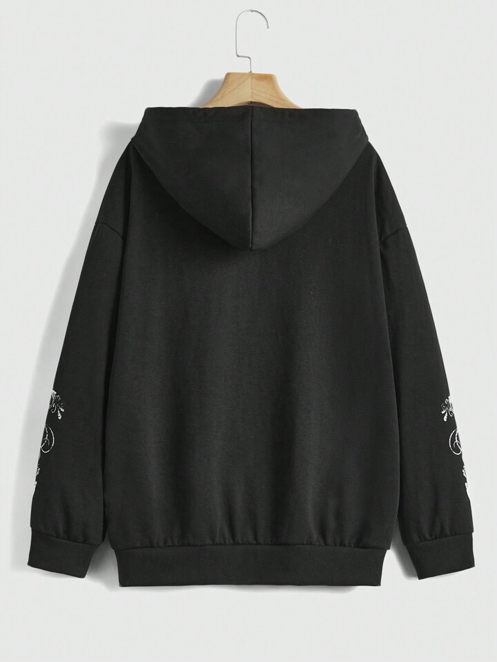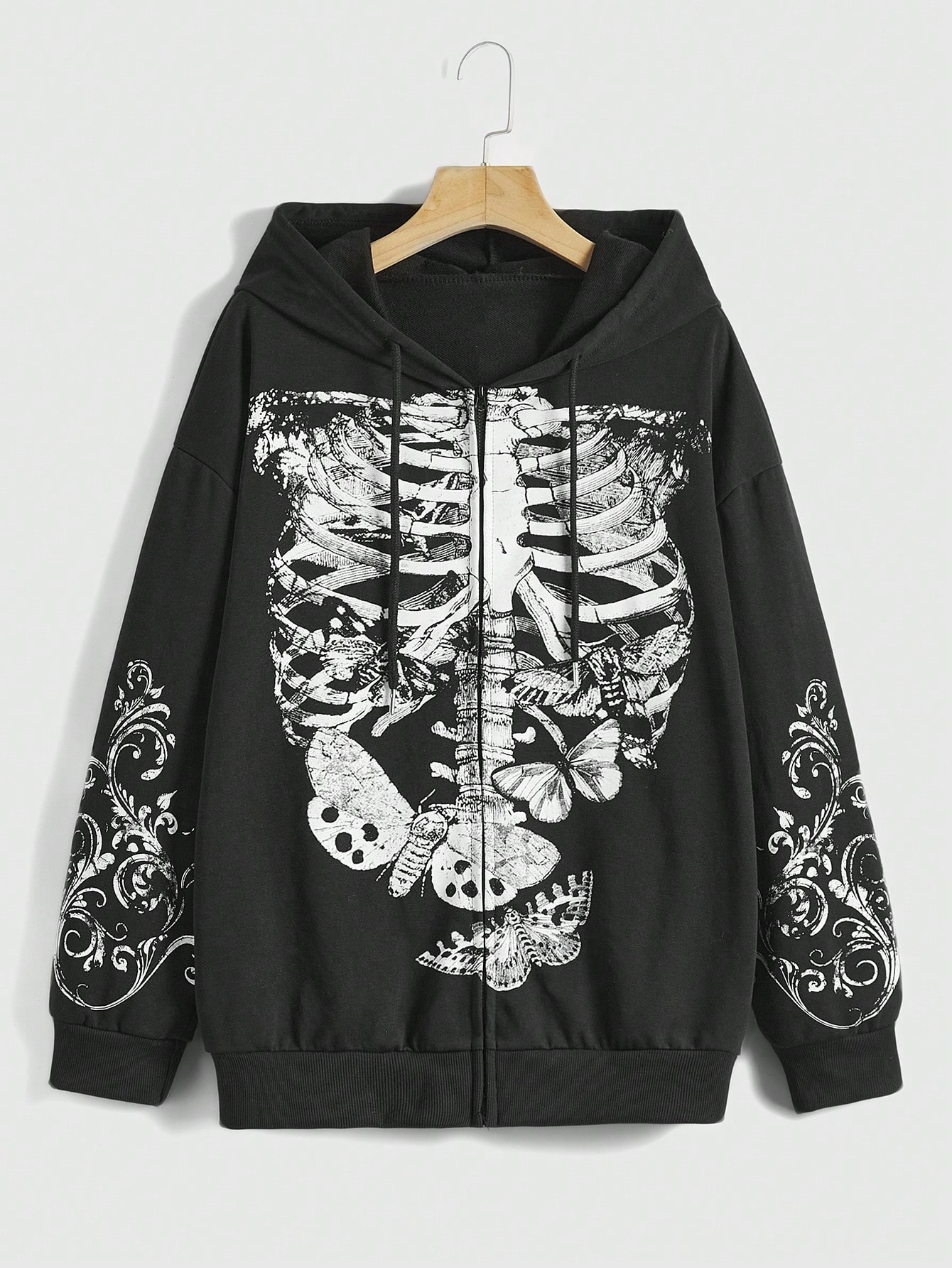 Fairycore Felpa con cappuccio scheletro & con stampa farfalla con zip con coulisse