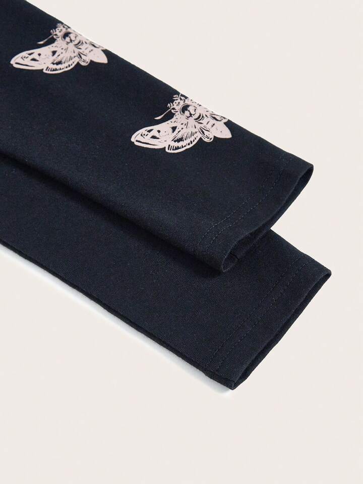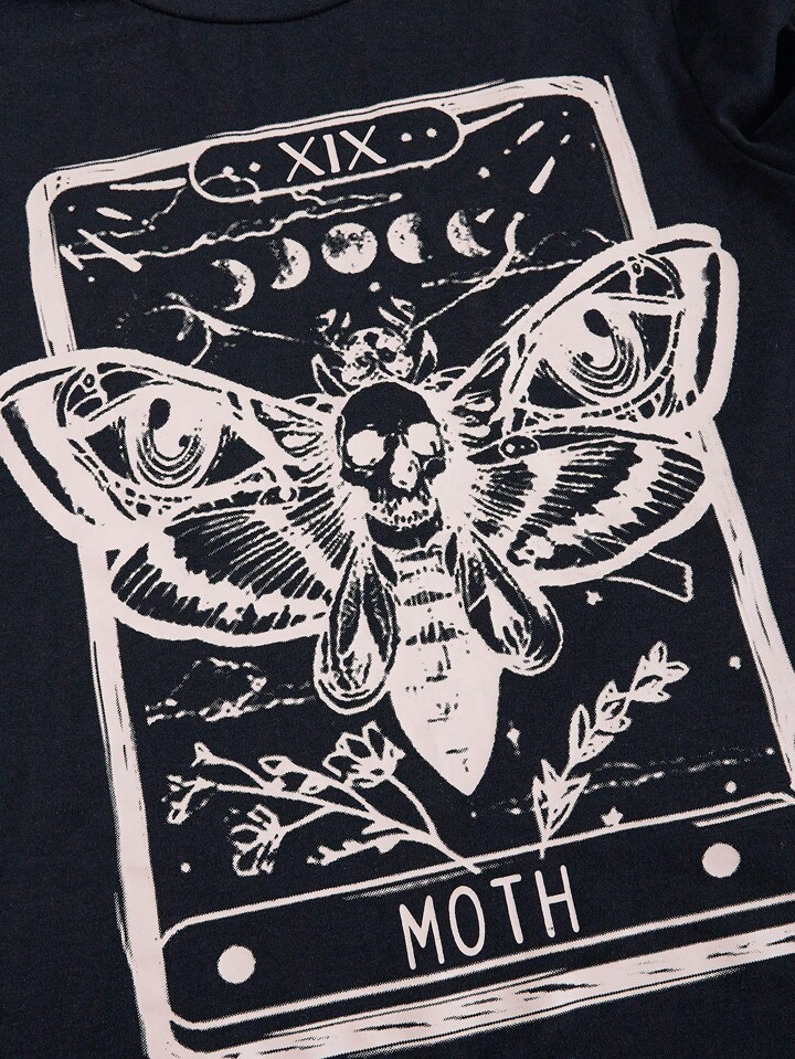 Fairycore Maglietta teschio & con stampa farfalla