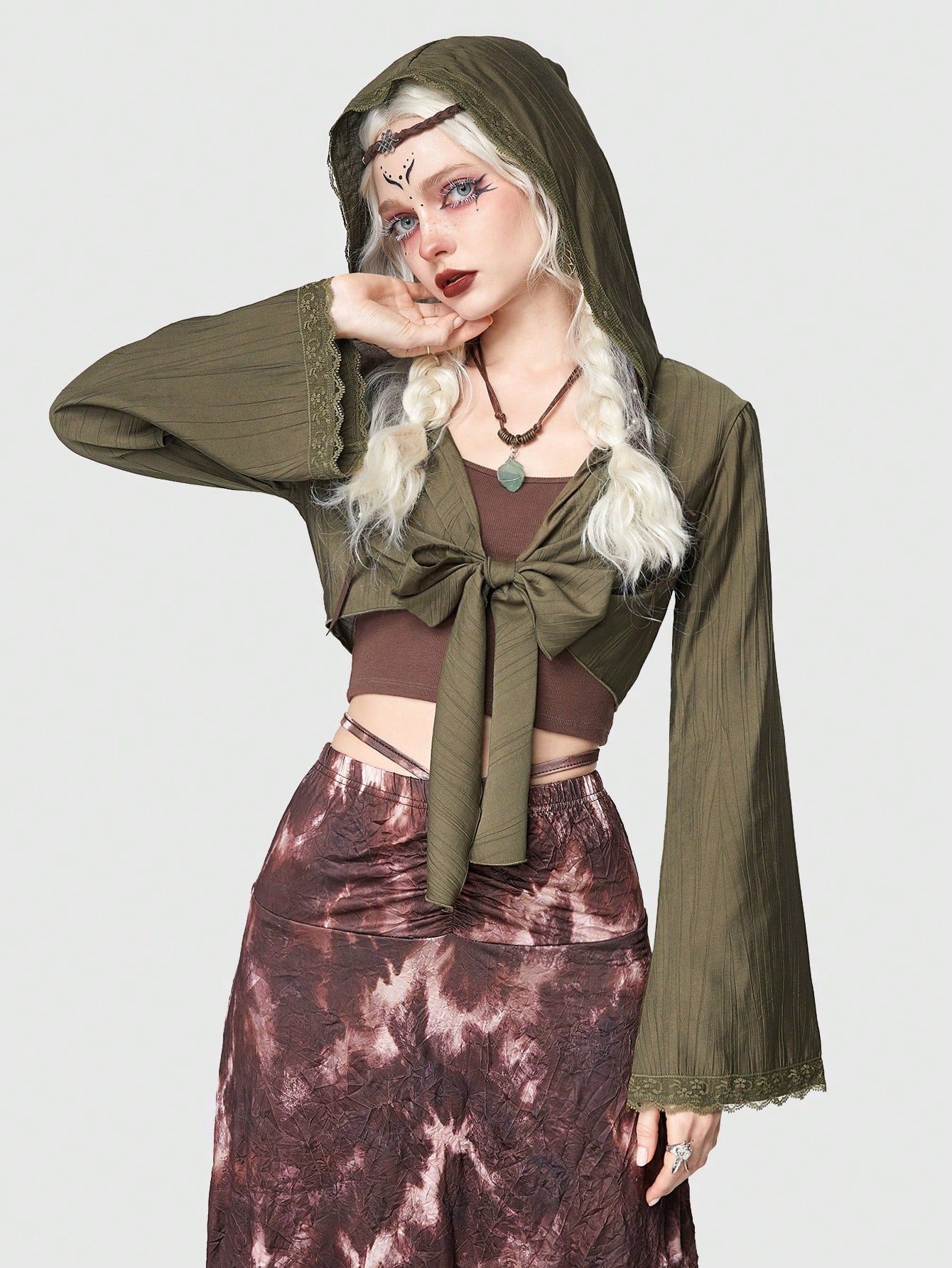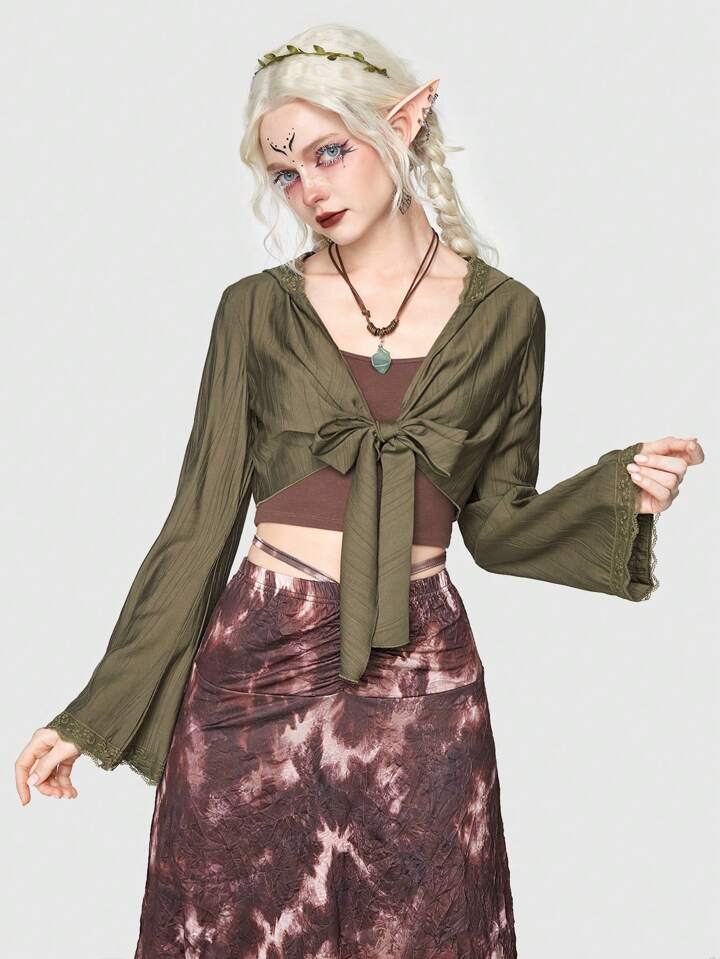 Fairycore Top corto monocolore pizzo a contrasto con nodo frontale