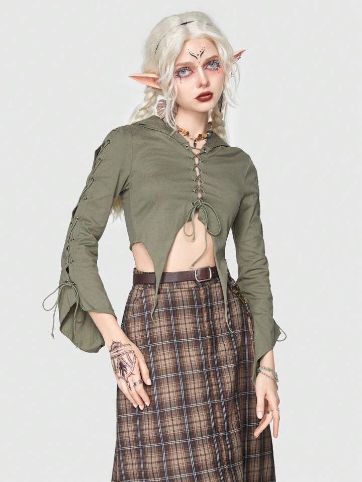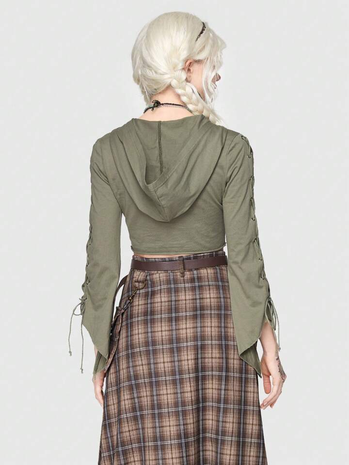 Fairycore Maglietta monocolore legato davanti corto con cappuccio