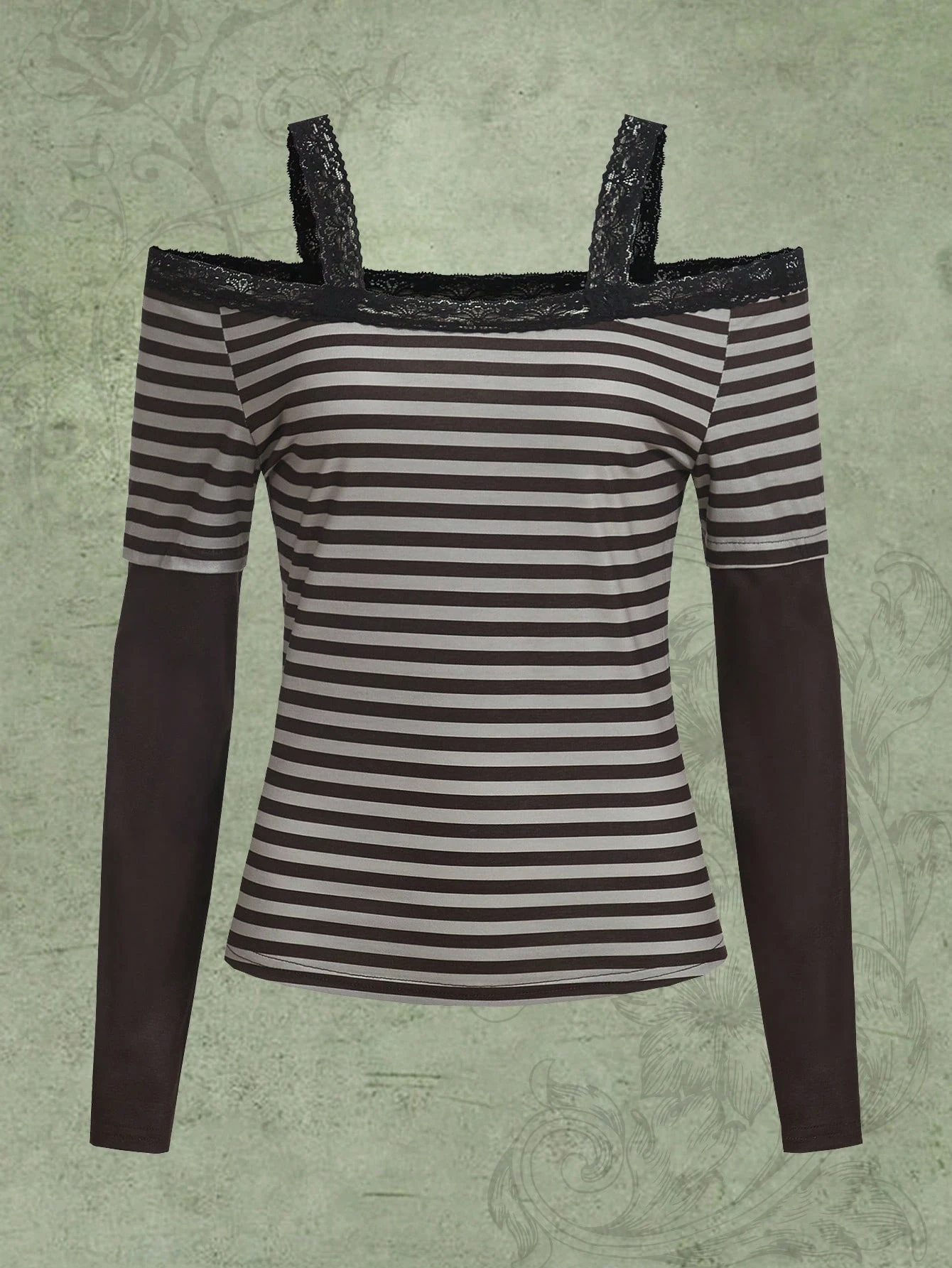 Fairycore Maglietta 2 in 1 righe con spalle scoperte
