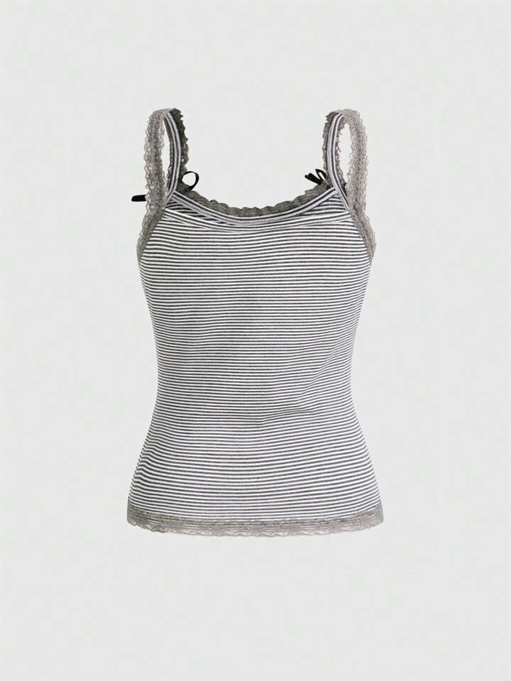 Fairycore Canottiera con top a contrasto in pizzo, motivo a righe e stelle, per la scuola
