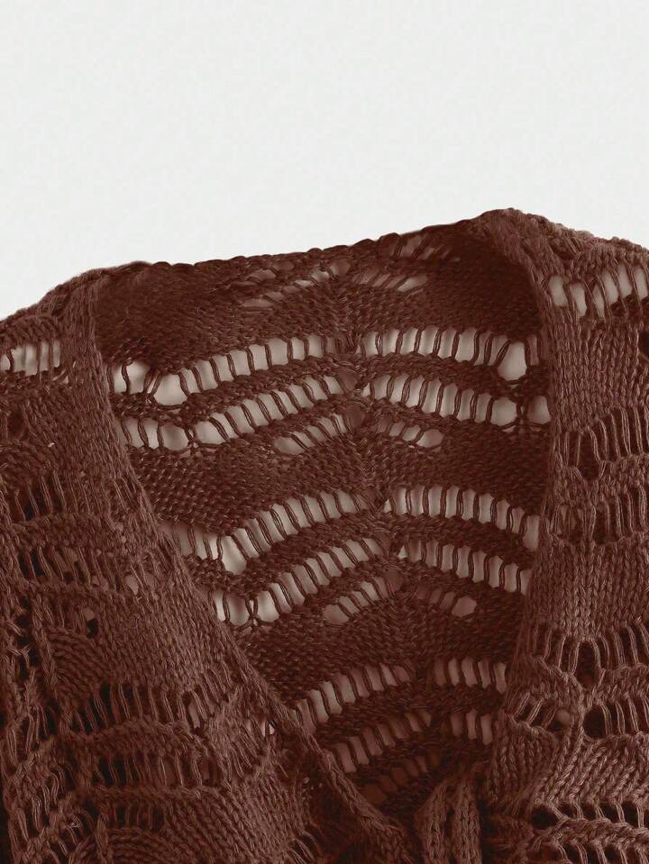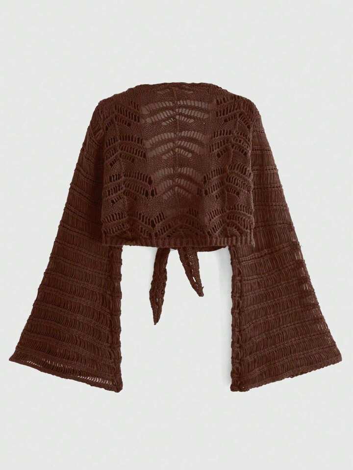 Fairycore Cardigan corto a maglia all'uncinetto con fiocco frontale, tinta unita, adatto per la scuola