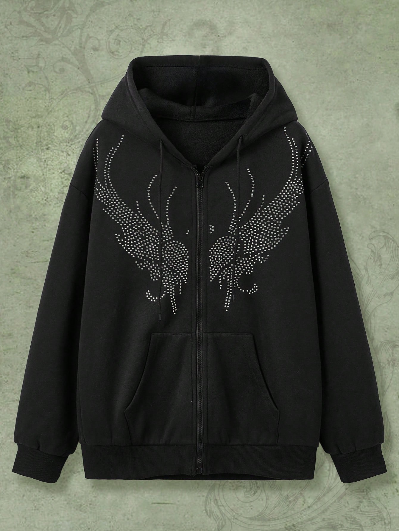 Fairycore Felpa con cappuccio ali con strass con zip con coulisse
