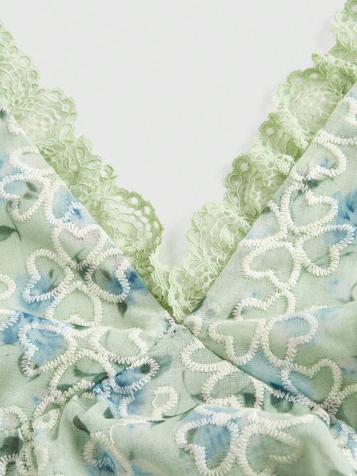 Fairycore Canotta estiva casual da donna con stampa floreale ditsy a patchwork in pizzo per vacanze