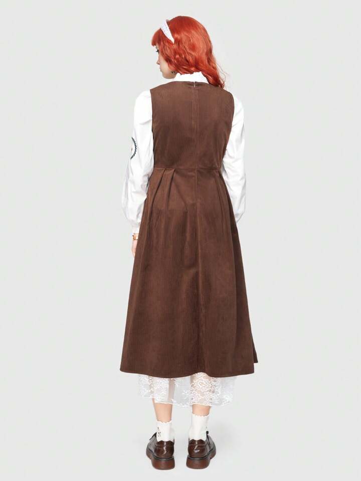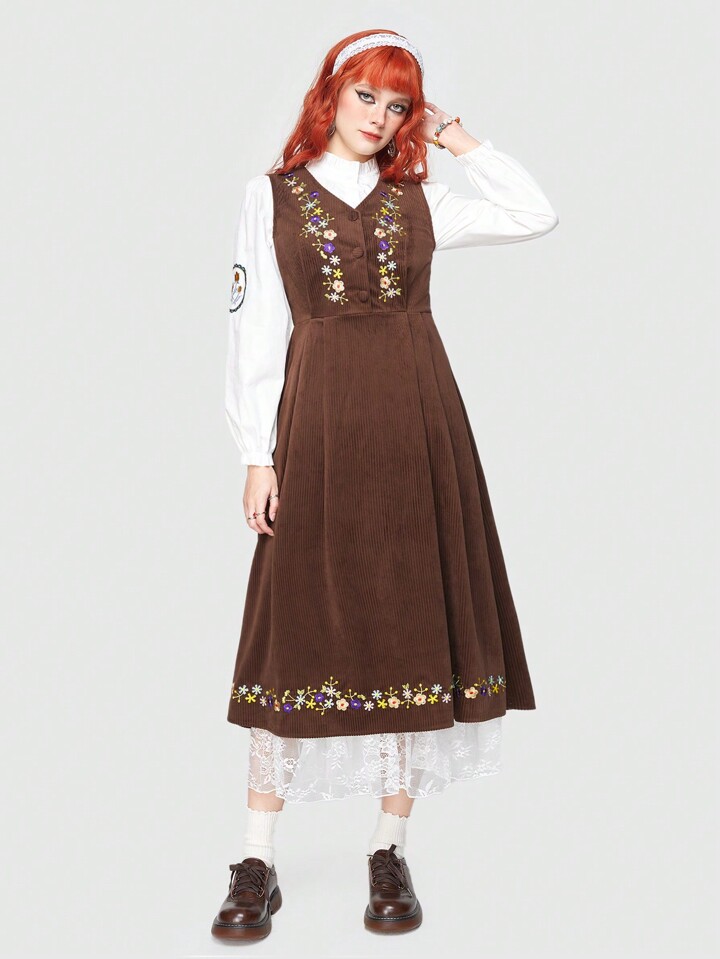 Fairycore Abito Senza Maniche Con Ricamo Floreale In Velluto A Coste Per Donne