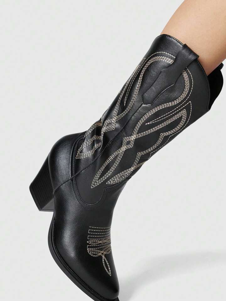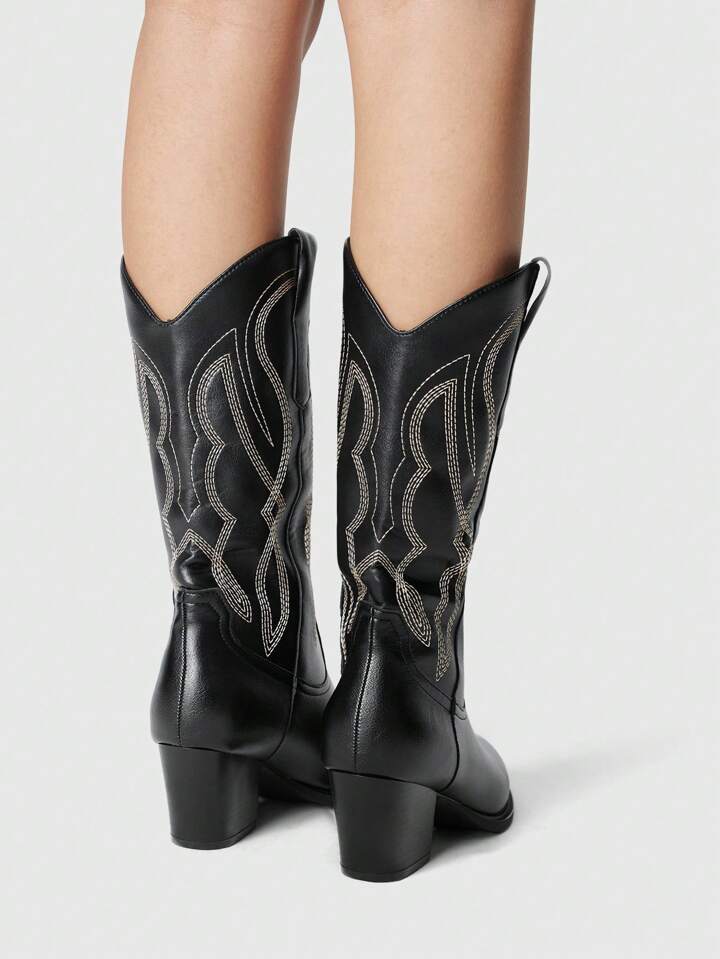 Fairycore Stivali da cowgirl da donna con dettagli ricamati e tacco largo, stivali western casual in stile cowboy