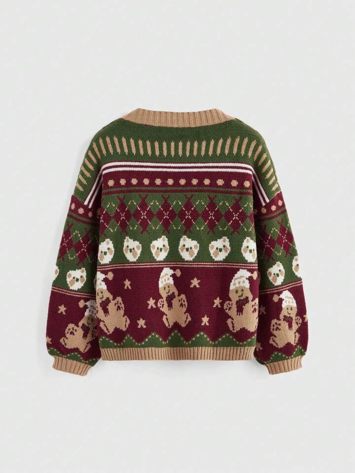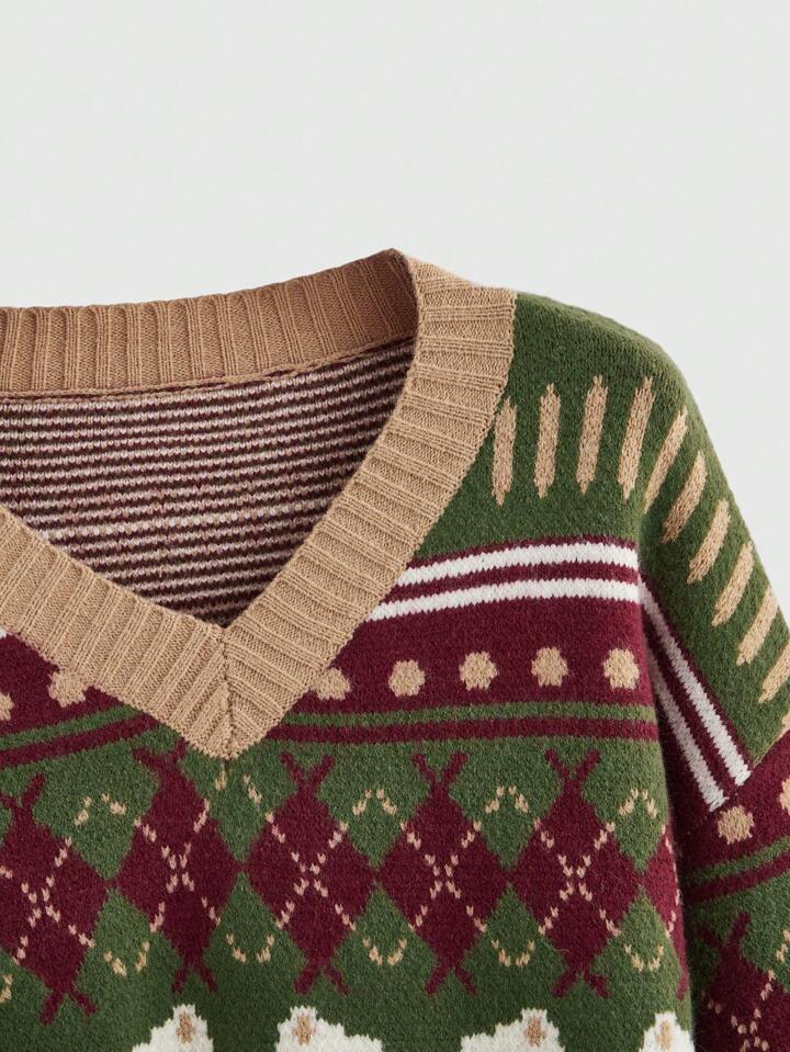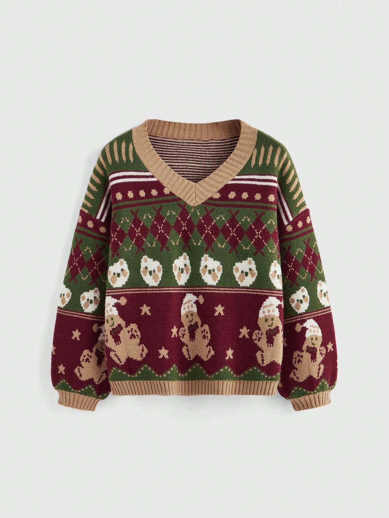 Fairycore Maglione natalizio da donna con scollo a V e spalle scoperte, maniche lunghe, con stampa di omini di pan di zenzero, adatto per l'autunno/inverno