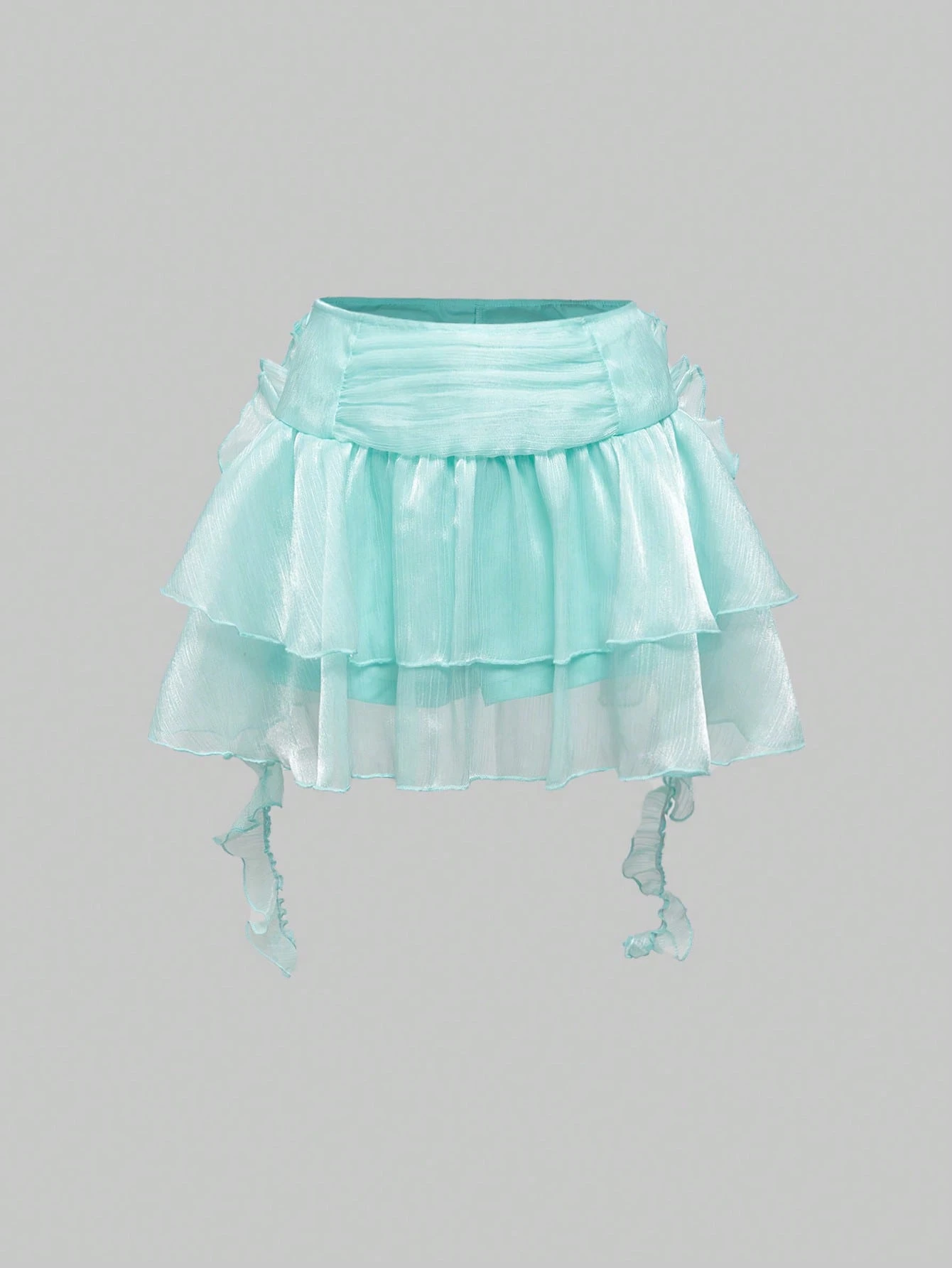 Fairycore Gonna a sirena con volant sul bordo, in tessuto lucido, in stile vacanza per le donne
